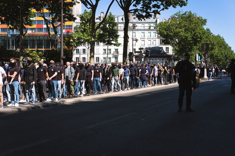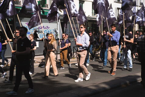 A l'appel du "Comité du 9-mai" démonstration de force de l'ultradroite dans les rues de Paris à l'occasion de la commemoration de la mort de, Sébastien Deyzieu, militant de l Oeuvre Française, décédé en 1994. Lors d'un rassemblement de l'ultradroite interdit le jeune homme avait fait une chute du toit d un immeuble en voulant échapper à la police.