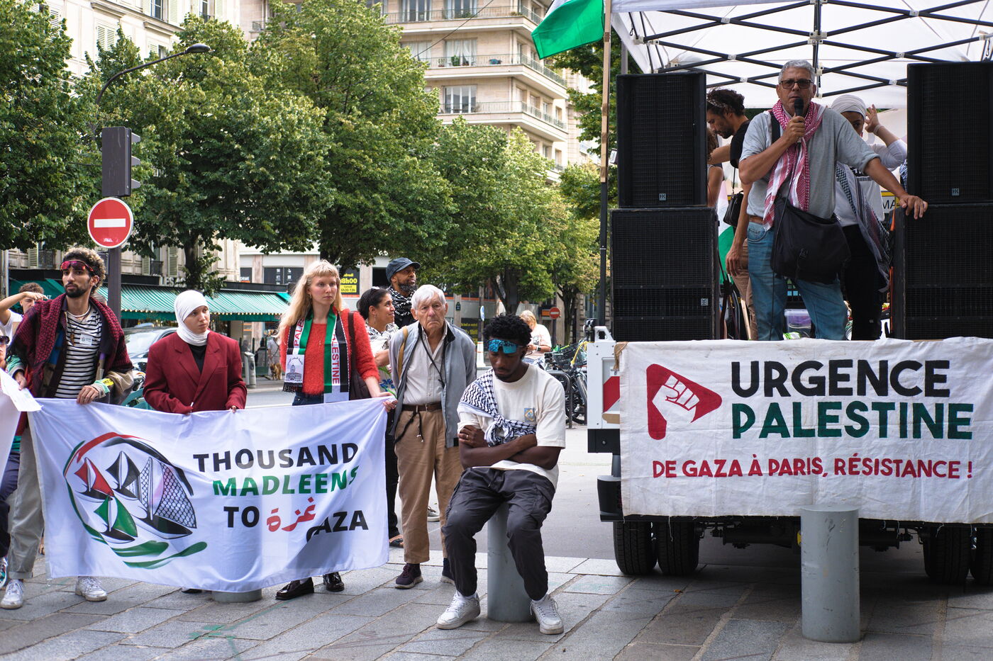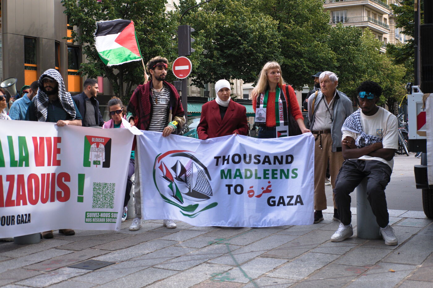 Manifestation en soutien au peuple Palestinien en presence de membres de la Flottille de la Liberte pour Gaza.
