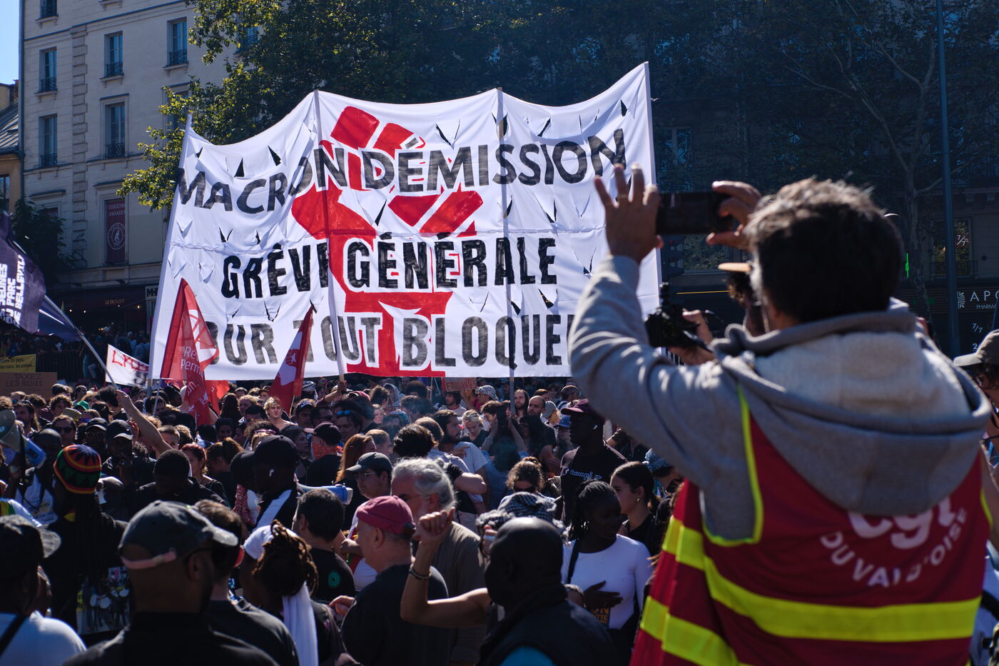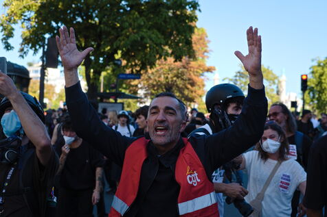 A l'appel de l'intersyndicale, manifestation pour le retrait des mesures d'économie budgétaires et pour plus de justice sociale et fiscale.