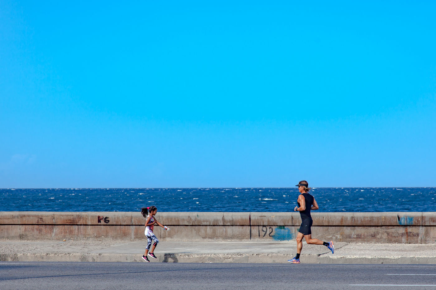 Surrealist also because of the deep disinterest that the Havana population shows. One would think that not a single person present on the Malecòn is it for the race, but that it is here by chance, by habit, or by necessity. The fishermen fish, the lovers kiss, and the poor runners exhausted by the heavy sun of Cuba can always wait for encouragement; always run!
