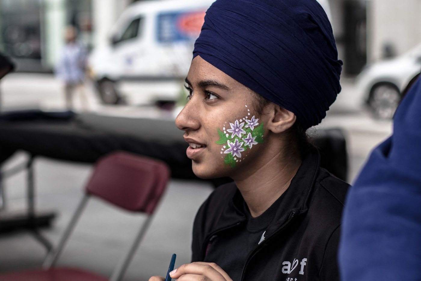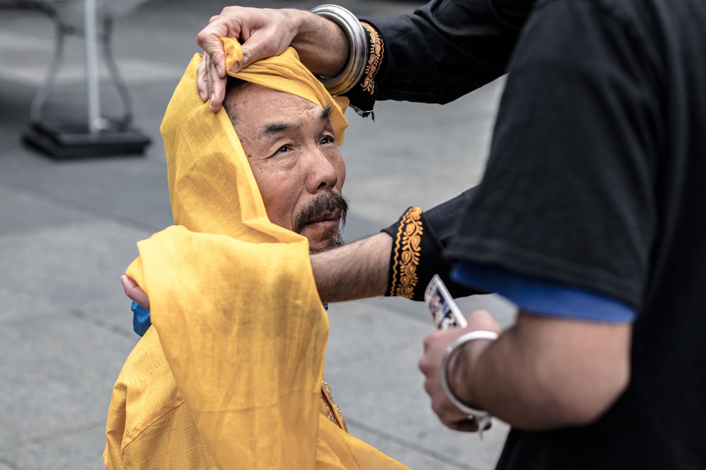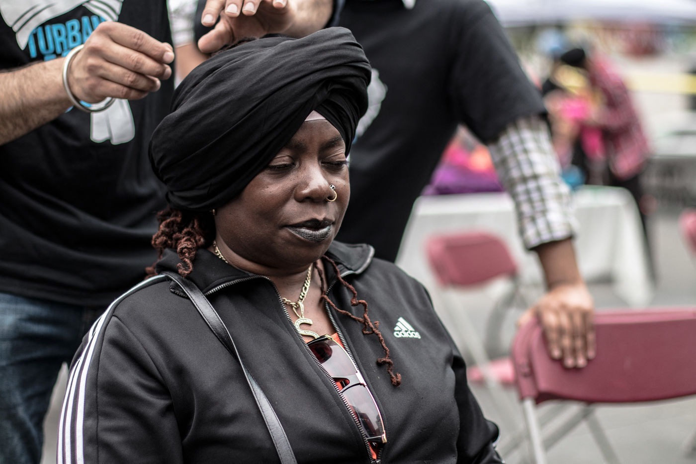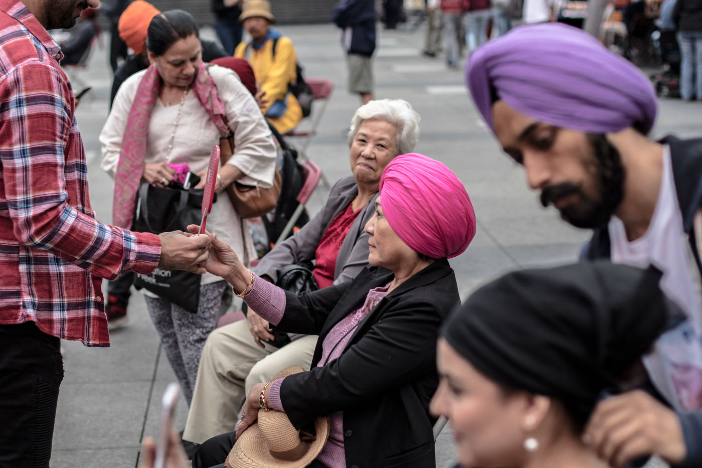 Les hommes et les femmes de la communauté confectionnent gratuitement des turbans colorés aux festivaliers de toutes origines, et les invitent durant ces quelques minutes à poser des questions sur la tradition Sikh. On peut même y voir les policiers de Toronto se prêter au jeu, et porter pour un jour le turban traditionnel, aux côtés de leurs collègues Sikh, qui eux le portent en permanence!