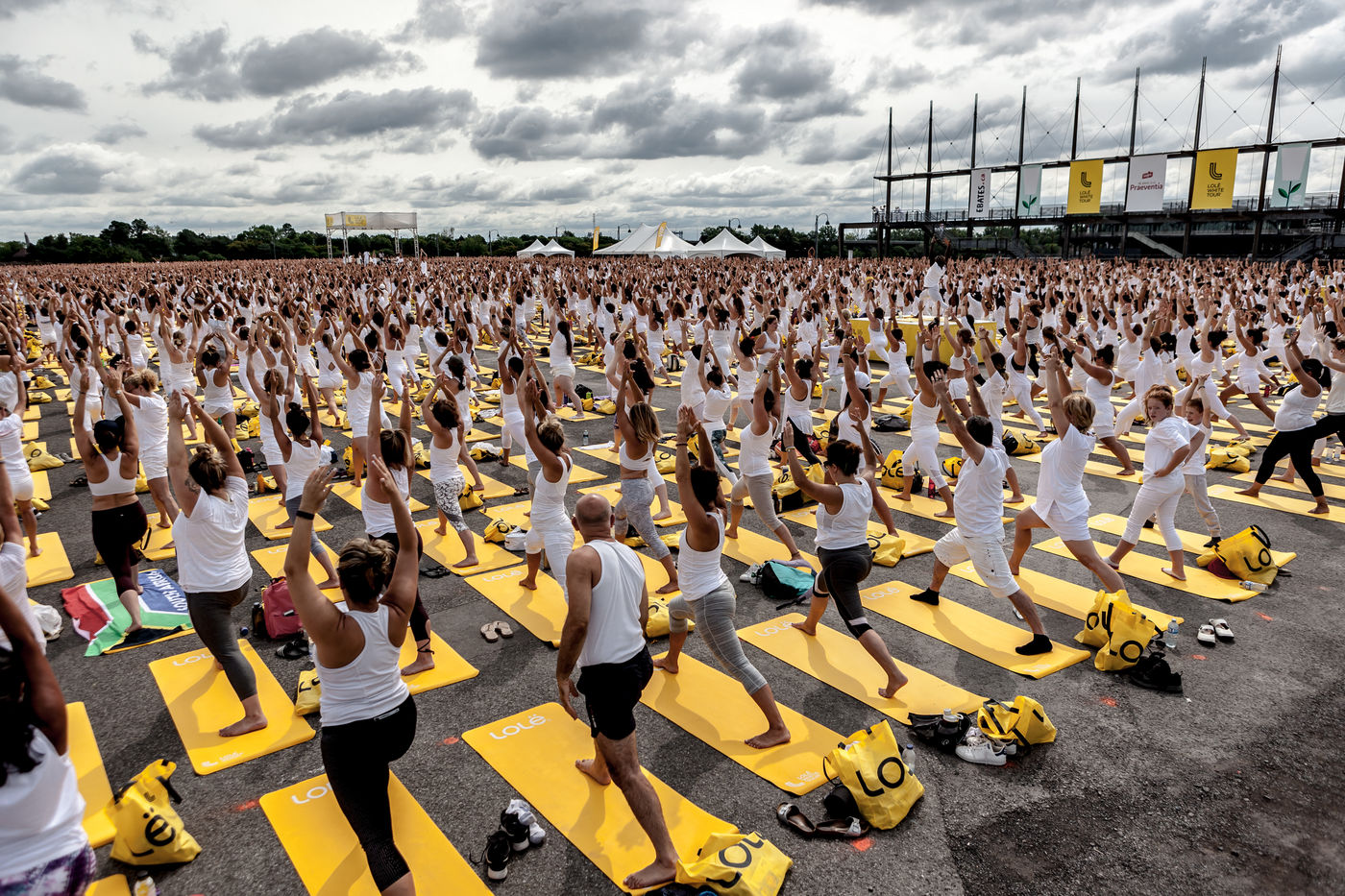 Depuis 2012, le Lolë White Tour (#lolewhitetour) a réuni plus de 65 000 personnes, toutes vétues de blanc et provenant de toutes les communautés du monde, pour pratiquer le yoga et la médiation lors d'un instant unique dédié à la paix. À Montréal, plus de 7000 adeptes se sont réunis dans le Vieux Port pour communier ensemble.