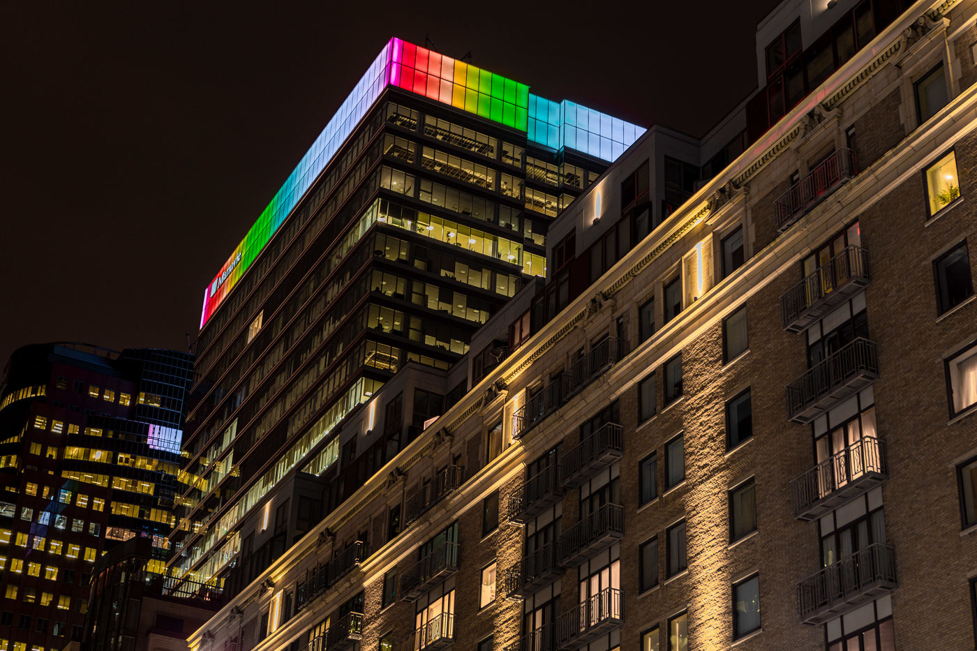 Inspired by the Italians, the city of Montreal displays the colors of the rainbow over our many buildings.