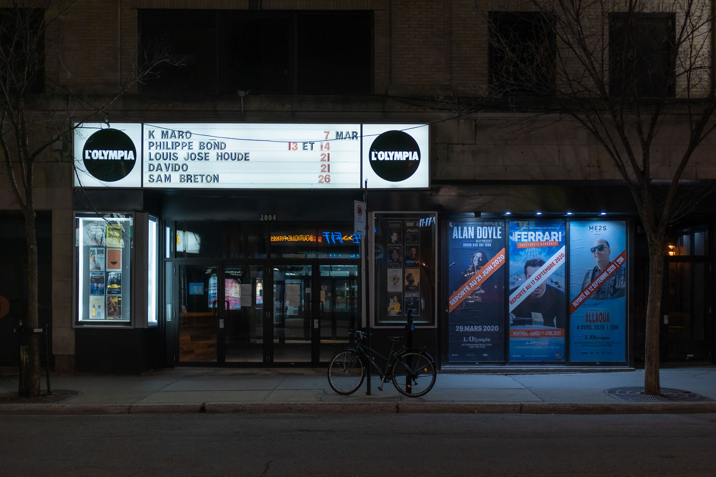 Le confinement dû à la crise du Coronavirus a fait de nombreuses victimes, au rang desquelles le monde des arts et de la culture. Cette série présente 20 endroits à Montréal, photographiés à l'heure où normalement le spectacle bat son plein.