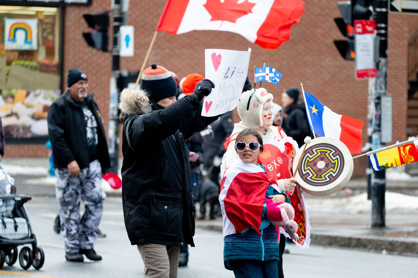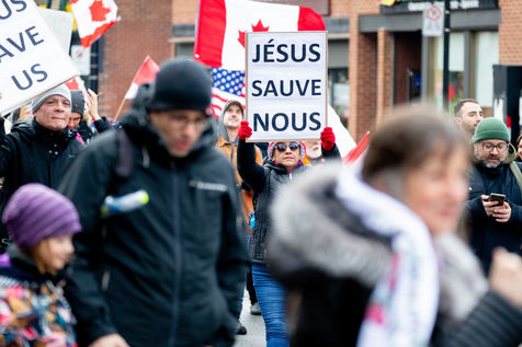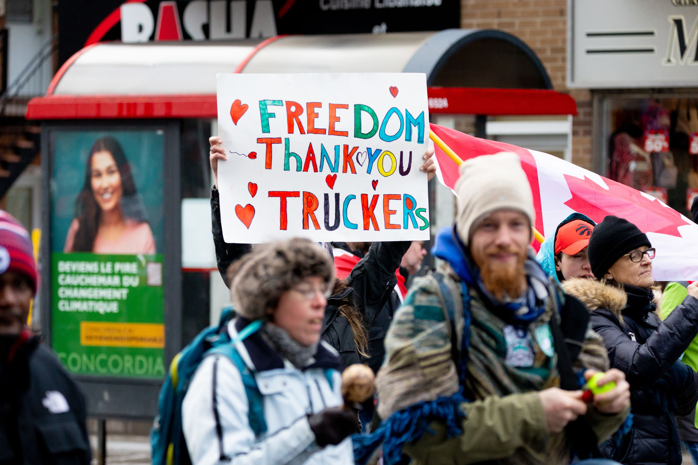 On their way to Ottawa to support the occupation in front of parliament, a "convoy for freedom" took part in a demonstration in Montreal, Canada, on February 12, 2022.