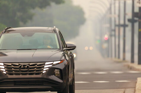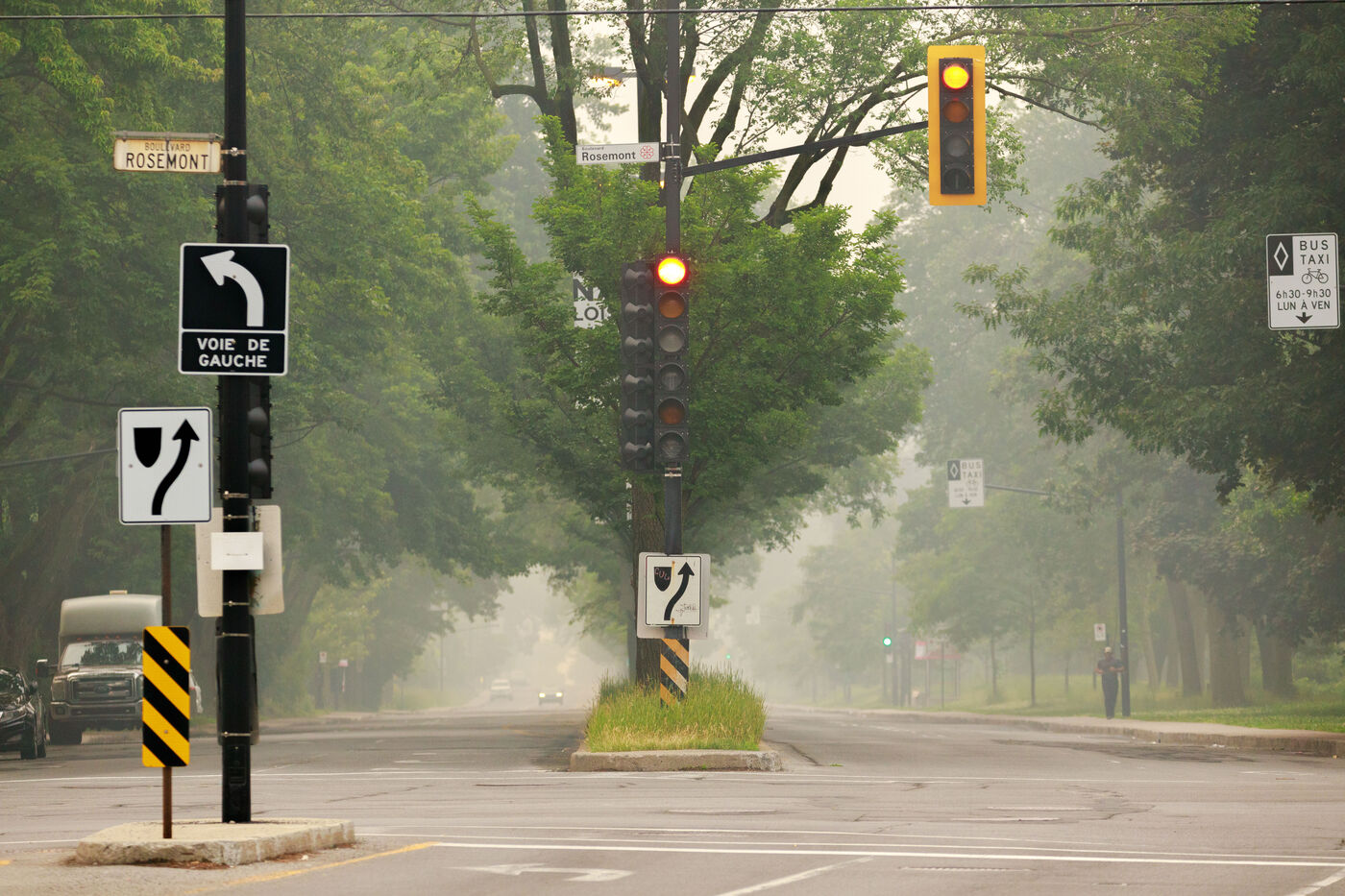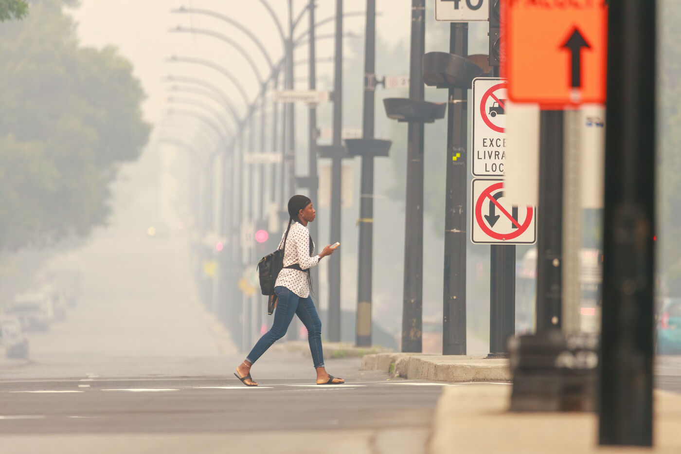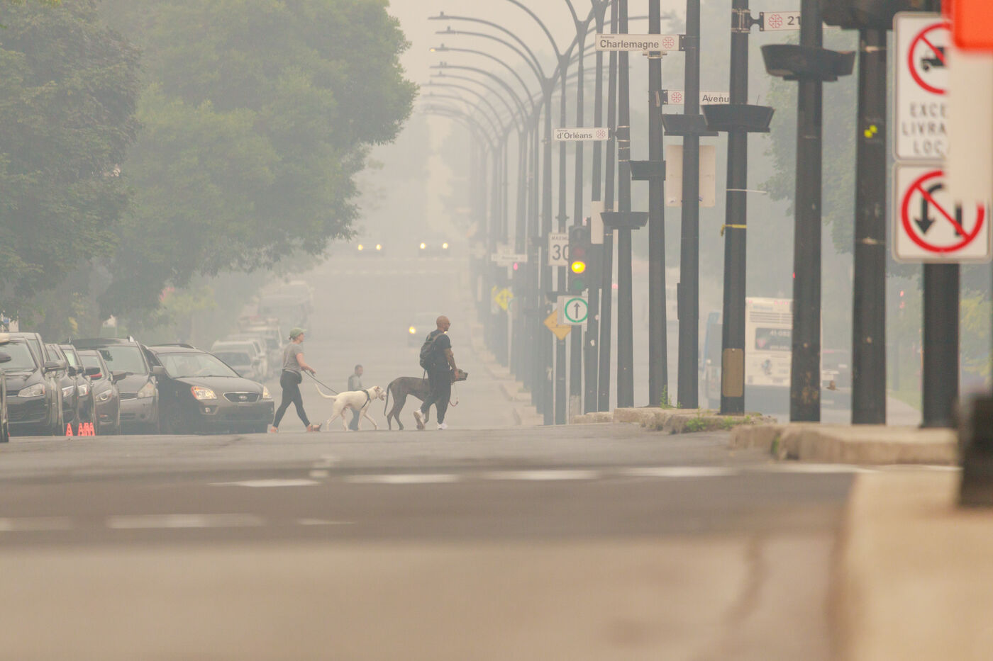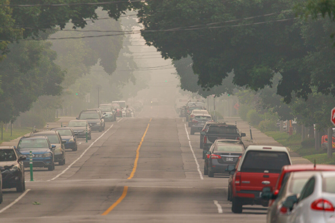 Several hundred km from the blazes, smog and a strong smell of smoke in Montreal, a consequence of the forest fires raging in Quebec. June 25, 2023, Montreal, QC, Canada.