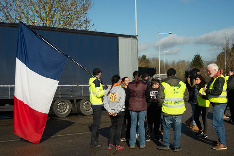 France, Longueau, 2022/02/11. The anti-vax and anti-sanitary pass, following the movement in Canada, have organised several freedom convoys from the four corners of France before meeting in the capital. After their Parisian blockade, they will join other European convoys in Brussels at the beginning of the week. The different convoys from the Hauts de France will gather at longueau near Amiens for a meal before leaving for Paris. Vaccinations, how many dead. Photographs by Delphine Lefebvre/Hans Lucas.