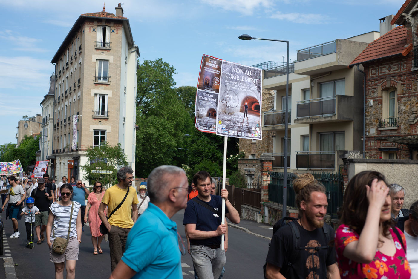 France, Meudon, 2022/05/15. At the initiative of the collective arnaudet quarries in struggle, a demonstration took place in the streets of Meudon against the filling of the Arnaudet quarries with the waste of the Grand Paris Express. No to filling.