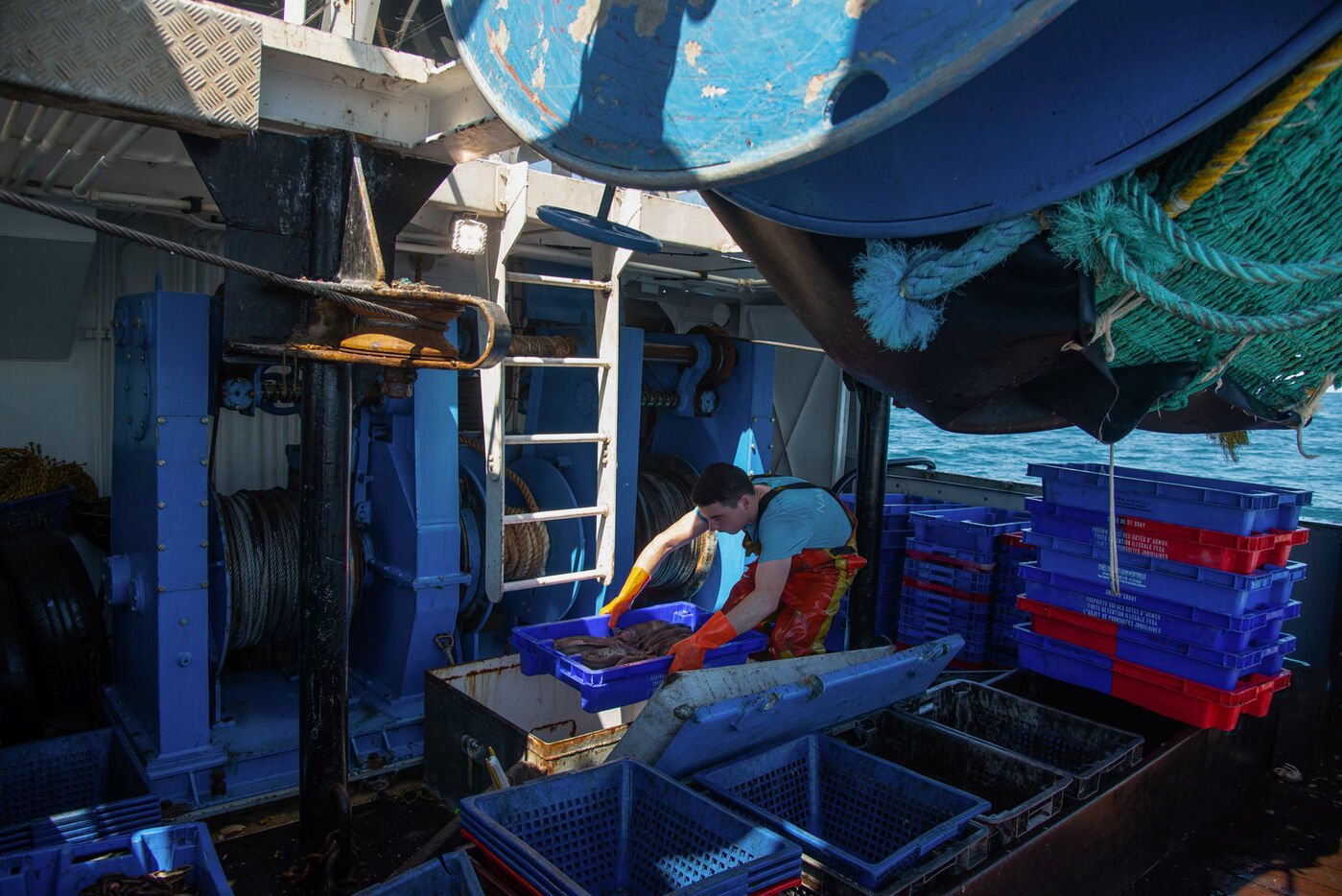 24-hour sea trip on a trawl in the Bay of Saint Brieuc. The fishing is not very good since the beginning of the wind farm works. Many fishermen are starting to worry about their future.