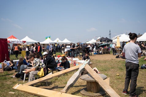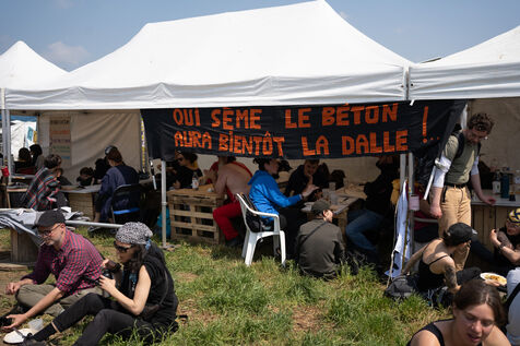 A festive and determined gathering organised at the initiative of the collective against line 18 to celebrate their two years of struggle on the Saclay plateau against line 18 of the Grand Paris Express. The Zaclay camp, on private land, is nevertheless threatened with eviction at the beginning of June following the speech of the Minister of the Interior Gérald Darmanin in the JDD in early April.