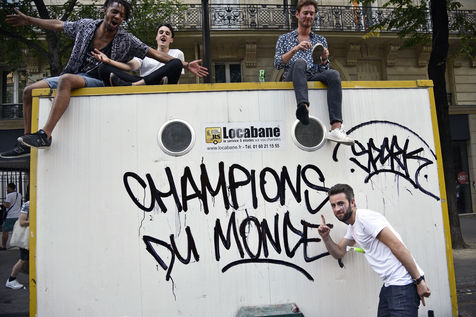 on the Champs Elysees after the victory of the French team in the Final of the World Cup Russia 2018