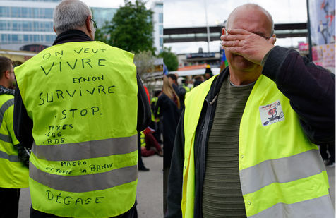 À partir du 17 novembre 2018, la contestation s'organise autour de blocages de routes et ronds)points et de manifestations tous les samedis. Ces protestations mobilisent surtout les habitants des zones rurales et périurbains, mais s'organisent également dans des métropoles, où se produisent plusieurs épisodes violents, notamment sur l'avenue des Champs-Élysées.