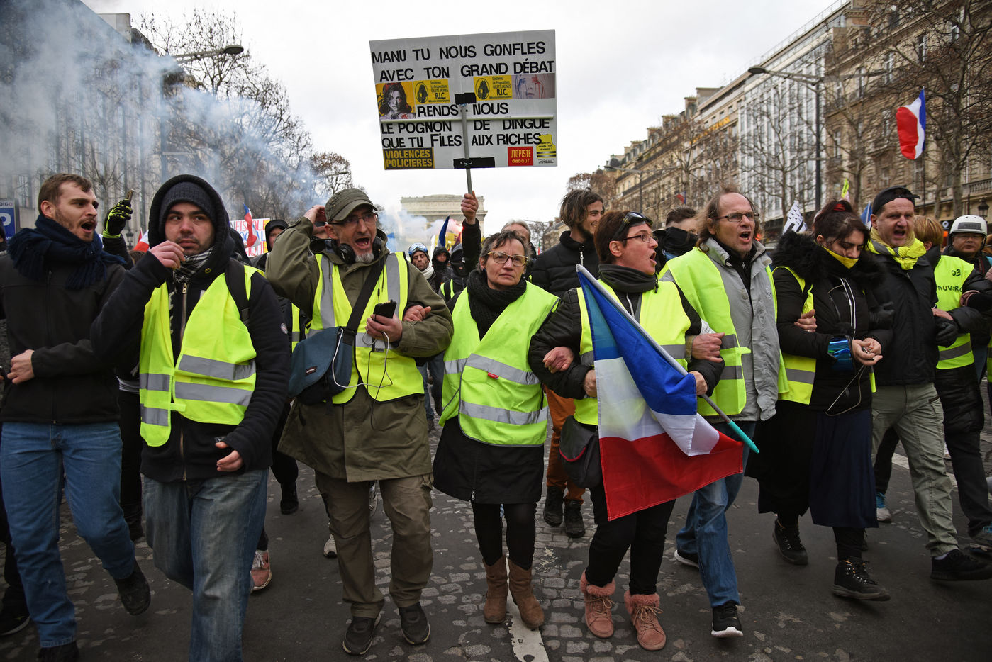 From 17 November 2018 onwards, the protest was organised around road blockades and roundabouts and demonstrations every Saturday. These protests mobilised mainly the inhabitants of rural and suburban areas, but were also organised in the metropolises, where several violent episodes occurred, notably on the Champs-Élysées avenue.