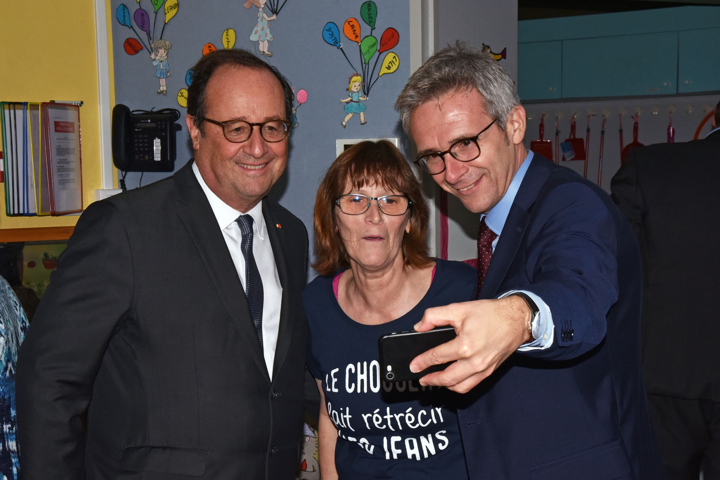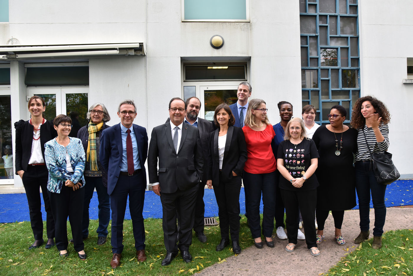 L'ancien président François Hollande visite une crèche écolo a Stains