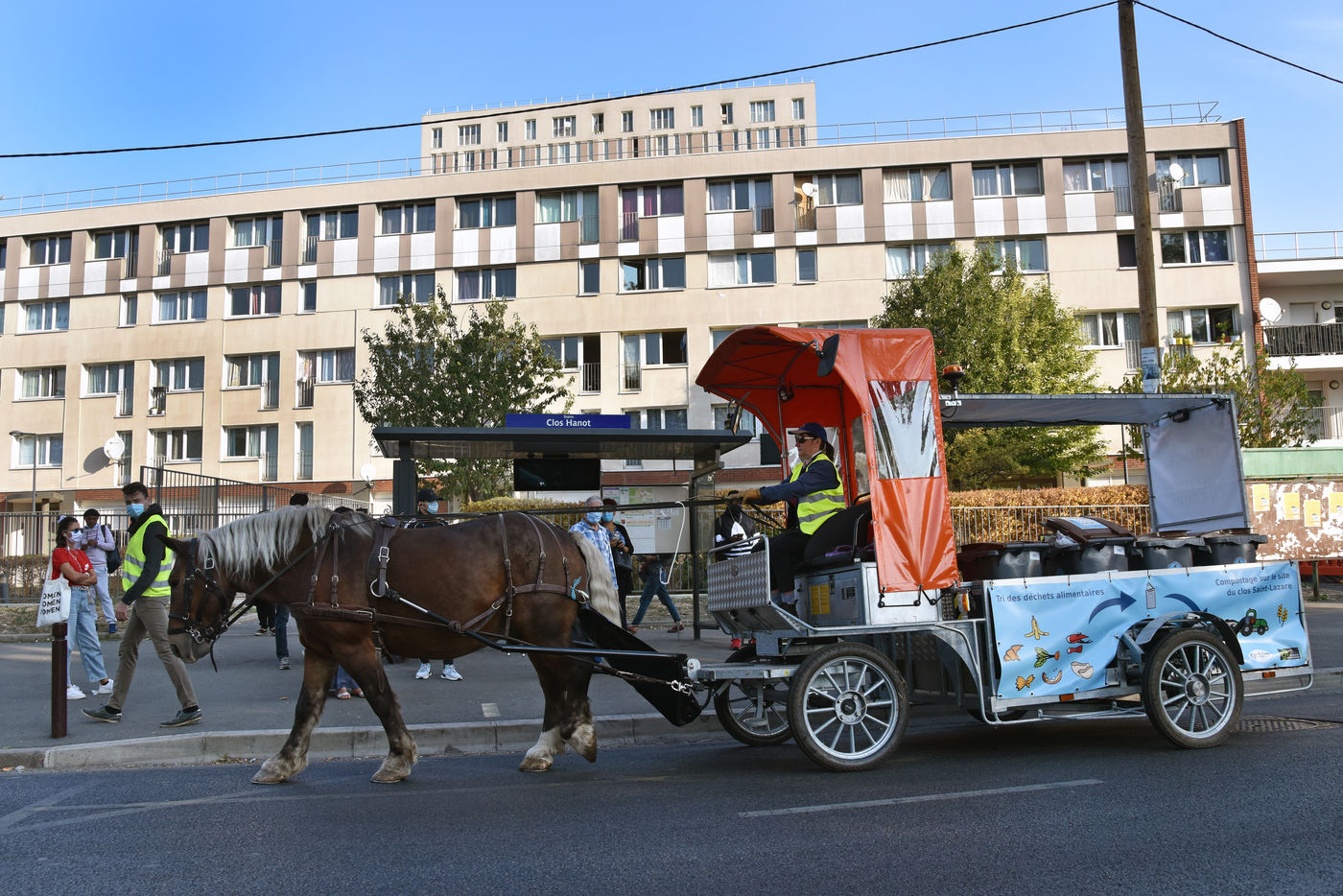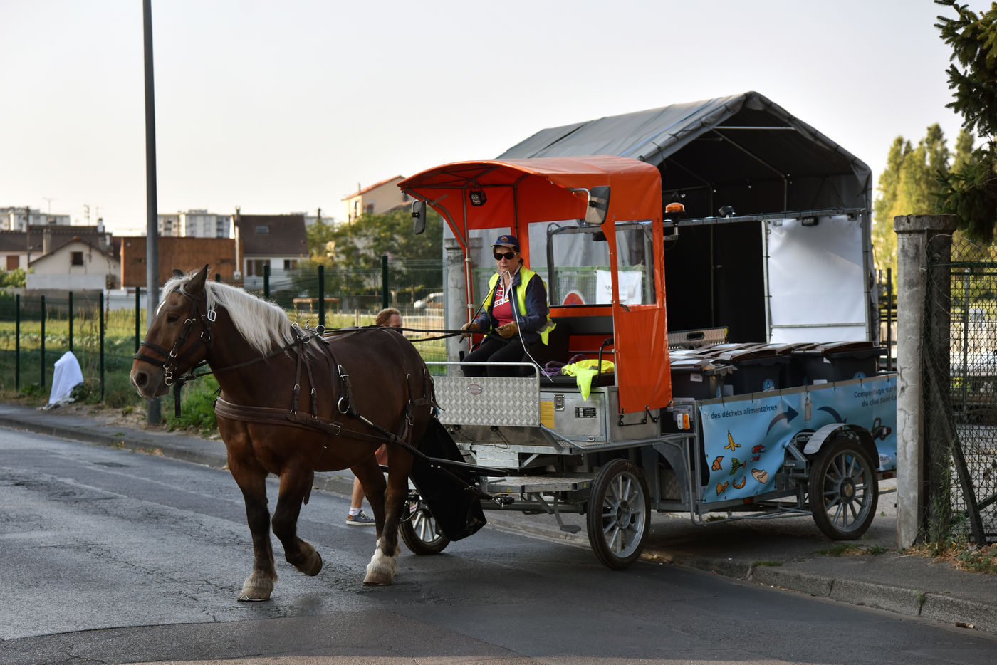 They are then recycled in the Z.A.C. des Tartres with the aim of creating local employment and acting for a greener and healthier environment. The horse-drawn carriage is driven by a draught horse: in addition to its ecological dimension, the idea is also to encourage the inhabitants to sort their waste even more.
