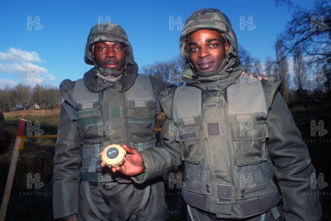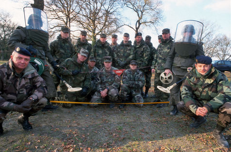Prés de 3000 démineurs venus de 12 pays : Libanais, Cambodgiens et Aujourd'hui justement, 15 militaires américain venues tout exprès de leur base d'Allemagne, pour suivre cette formation, passent aux travaux pratique sur le terrain avec comme formateur le capitaine Didier CHEVAL.