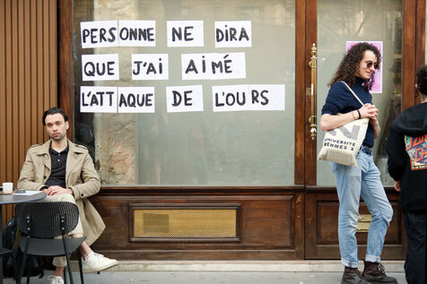 Collages dans les rues dénonçant les féminicides et les violences faites aux femmes à Paris.