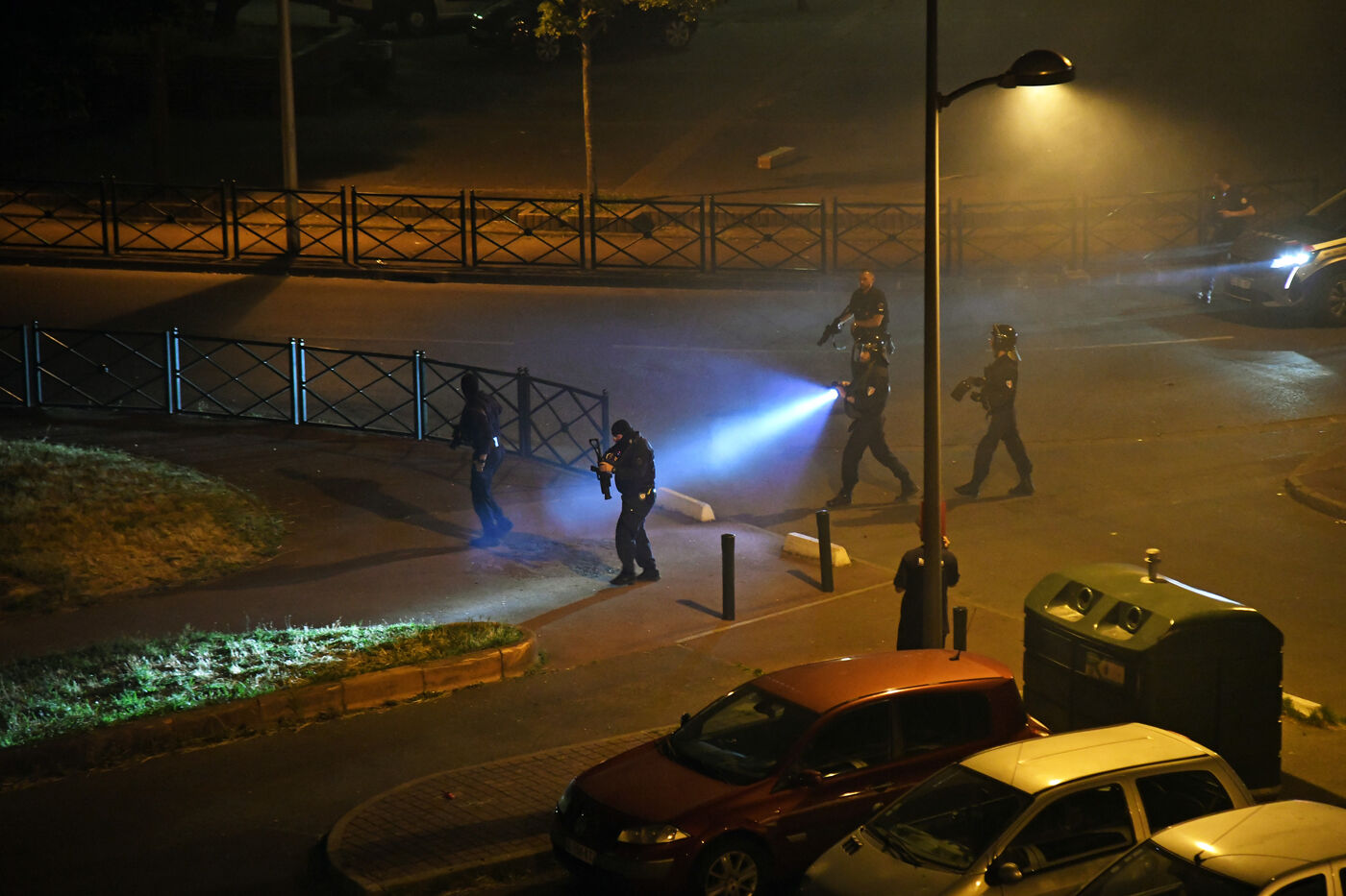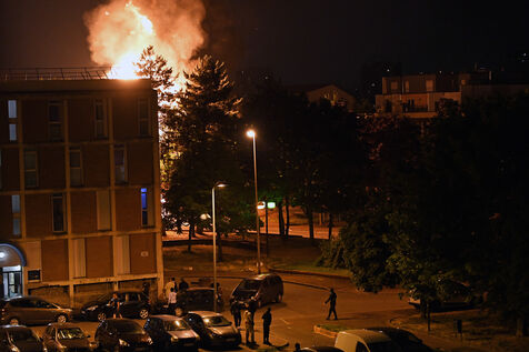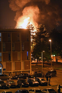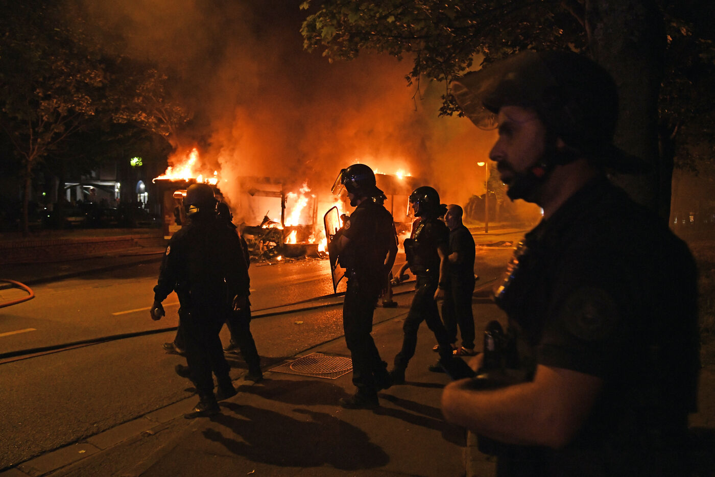 Around a hundred young people set fire to a bus and used a number of mortars in the housing estate. The police were on the scene very quickly. Photograph by Dragan Lekic / Hans Lucas