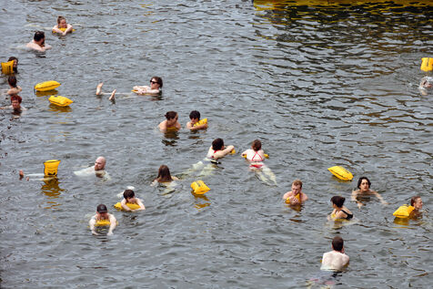 Il s'agit de la première baignade publique autorisée dans le fleuve depuis 1923.