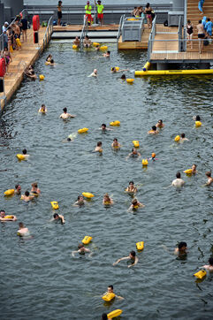 This was the first public swimming authorised in the river since 1923.