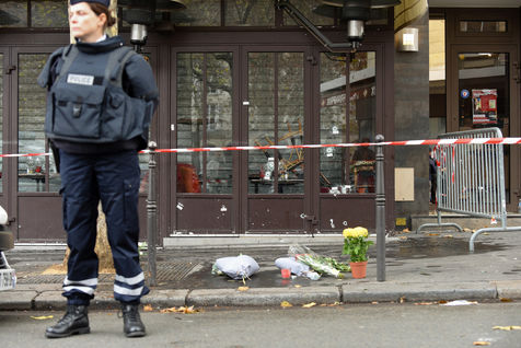 Gathering in tribute to the victims after the terrorist attack in Paris on Friday 13 November 2015