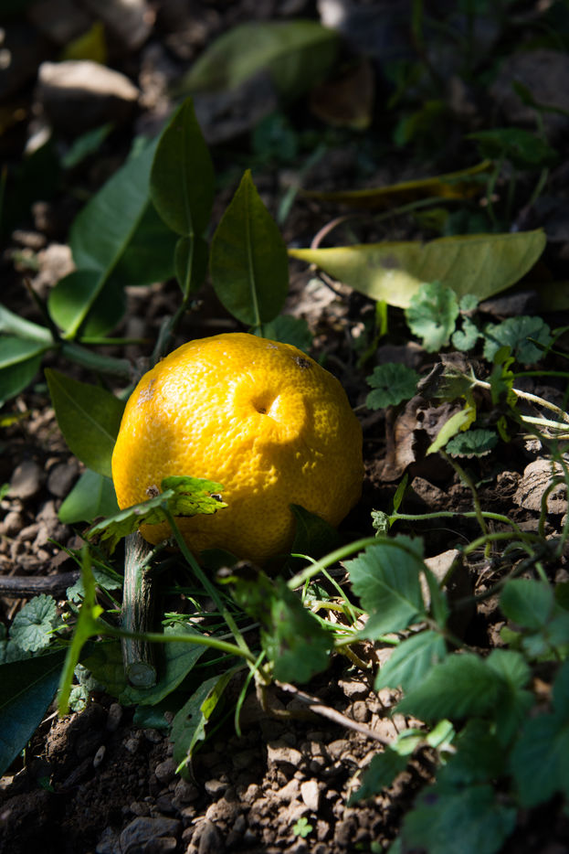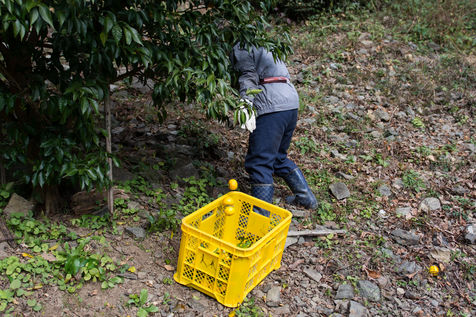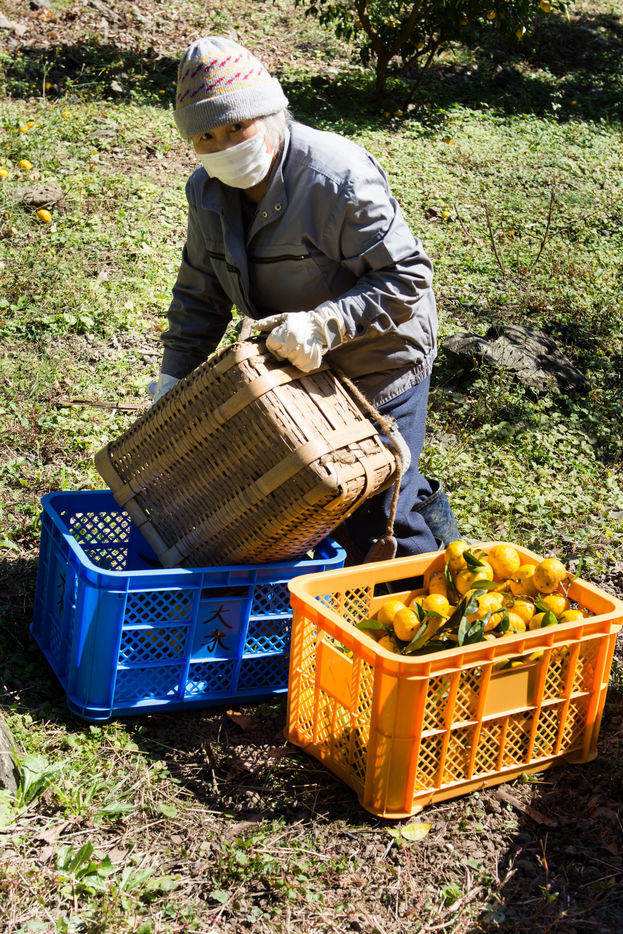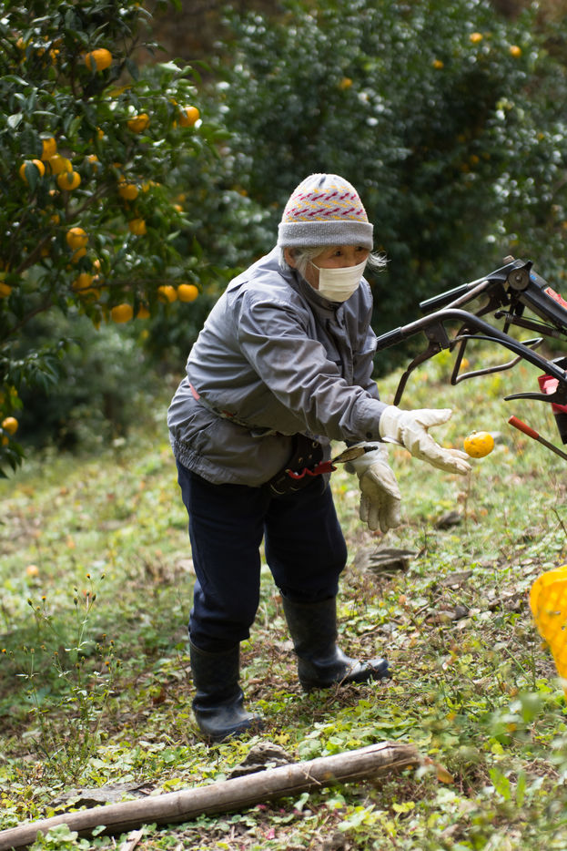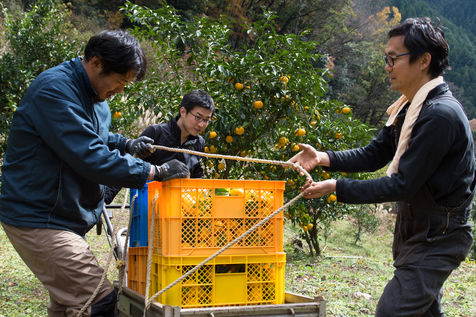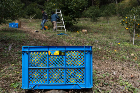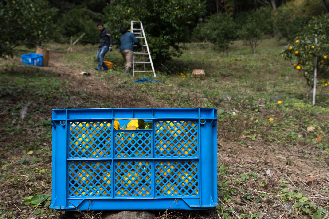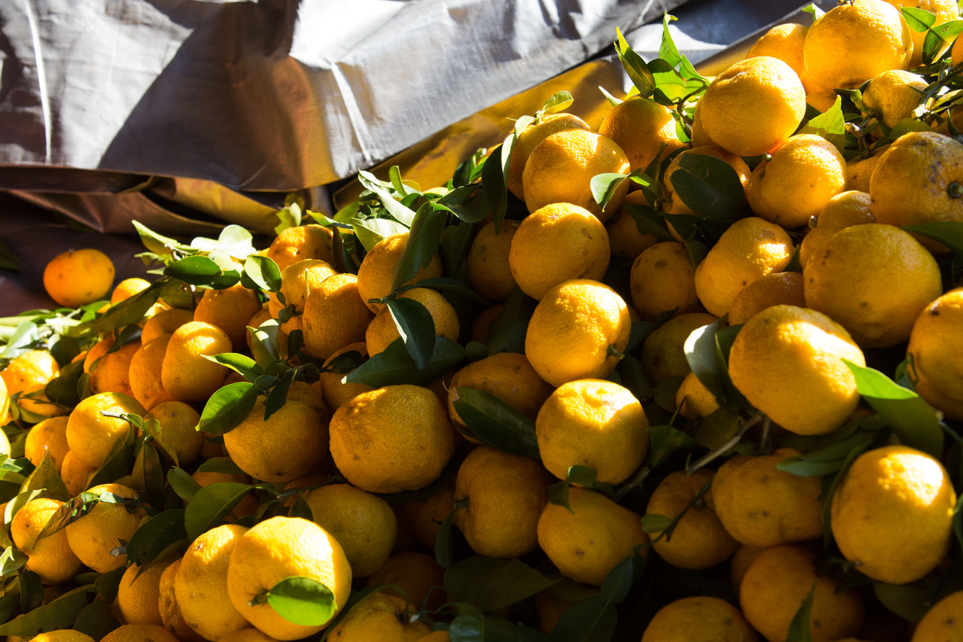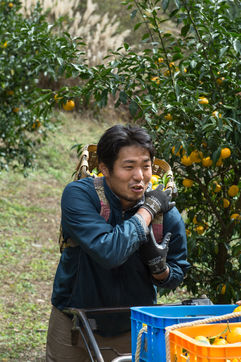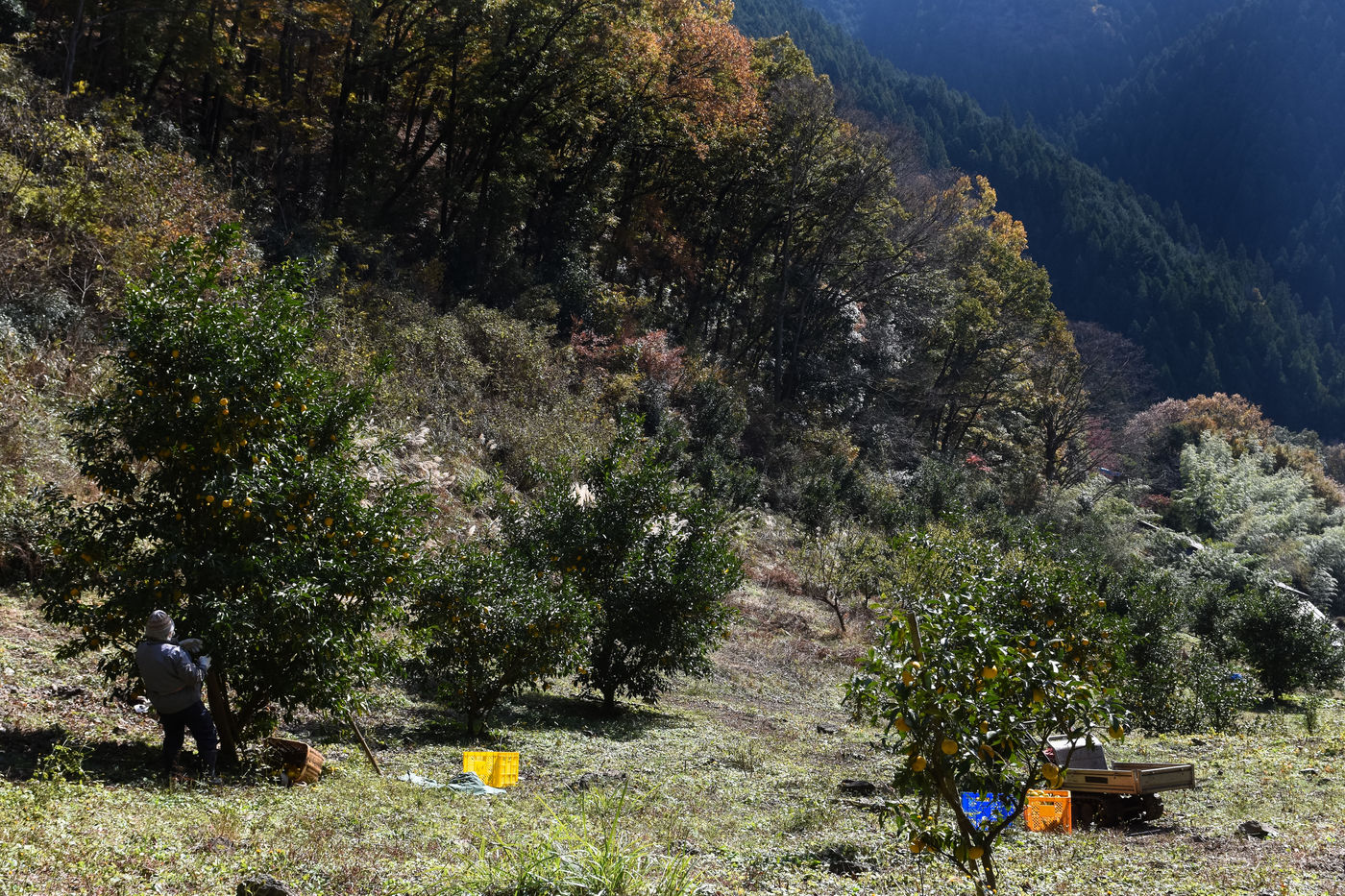 Perchée à flan de montagne, une parcelle de terrain est réservée à la plantation d'arbres fruitiers. Ici, le citron Yuzu y est cultivé biologiquement. De couleur jaune en hiver (fruit mûr) Agrume incontournable de la cuisine japonaise, le yuzu a un goût particulier entre le citron vert et le pamplemousse. Son acidité est forte et très appréciée des amateurs d'agrumes et des grands chefs.