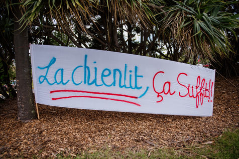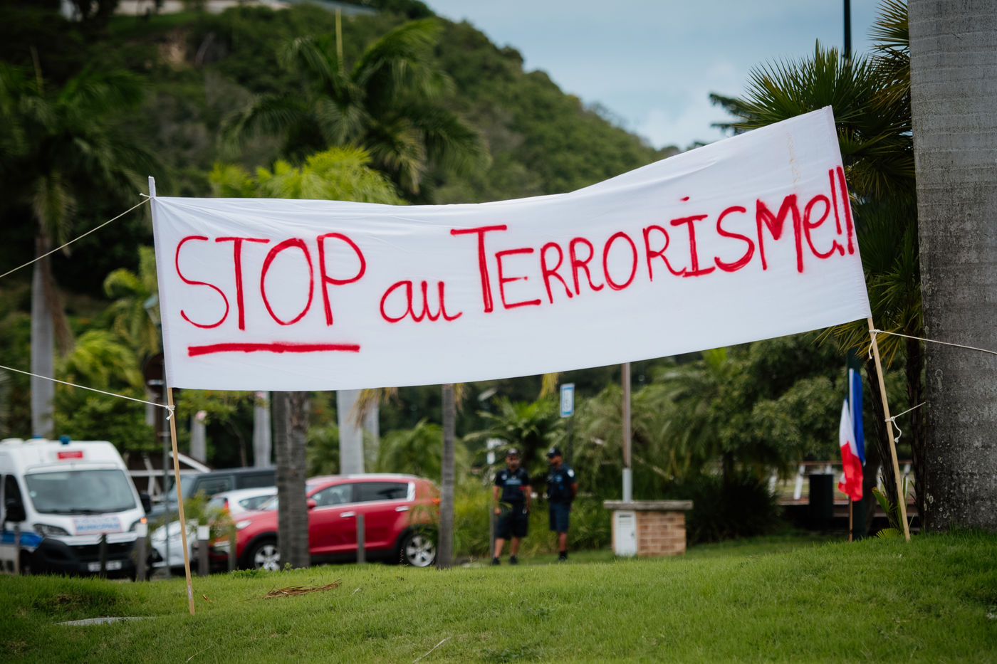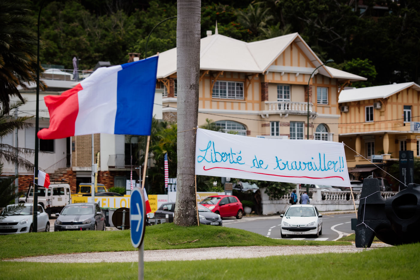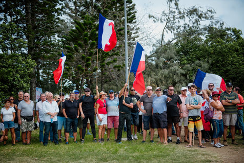 The "anti-blockades" mobilized on the traffic circles of Noumea by deploying French flags and banners to express their "fed up", following roadblocks by opponents to the sale of the southern factory to foreign investors, and in response to the "human chain" organized by the collective USUP (Usine du sud = country factory) on the same day, January 29, 2021.