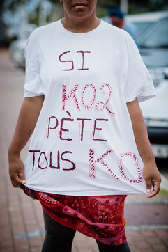 The USUP collective (Usine du sud = Usine pays) mobilized from one end of Anse Vata beach to the other to set up a "human chain" in order to "question the decision-makers on the environmental risks linked to the plant" and "demand full truth and transparency on the KO2 dam". In Noumea, January 29, 2021.