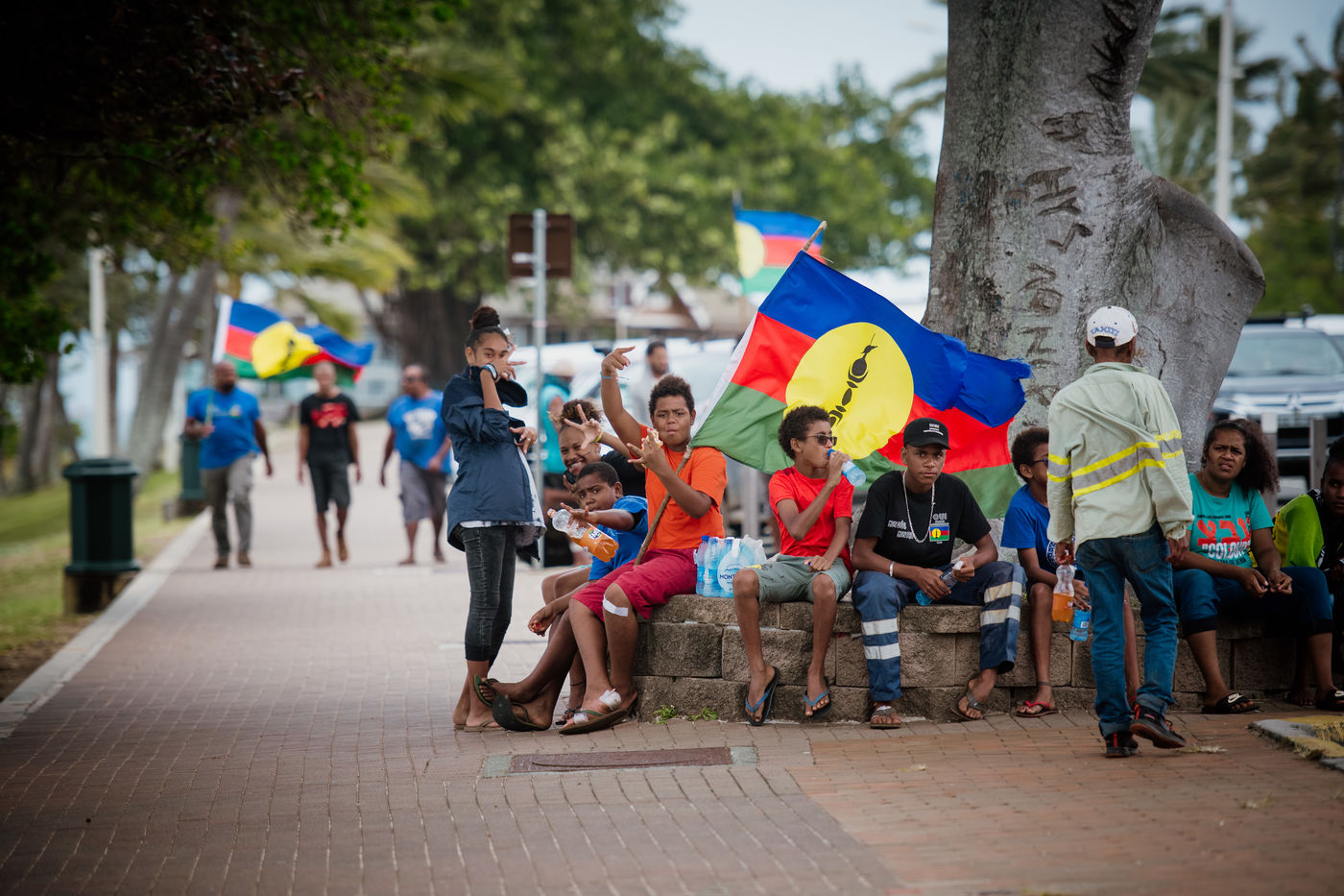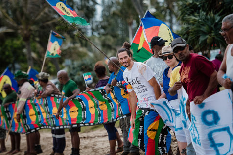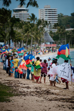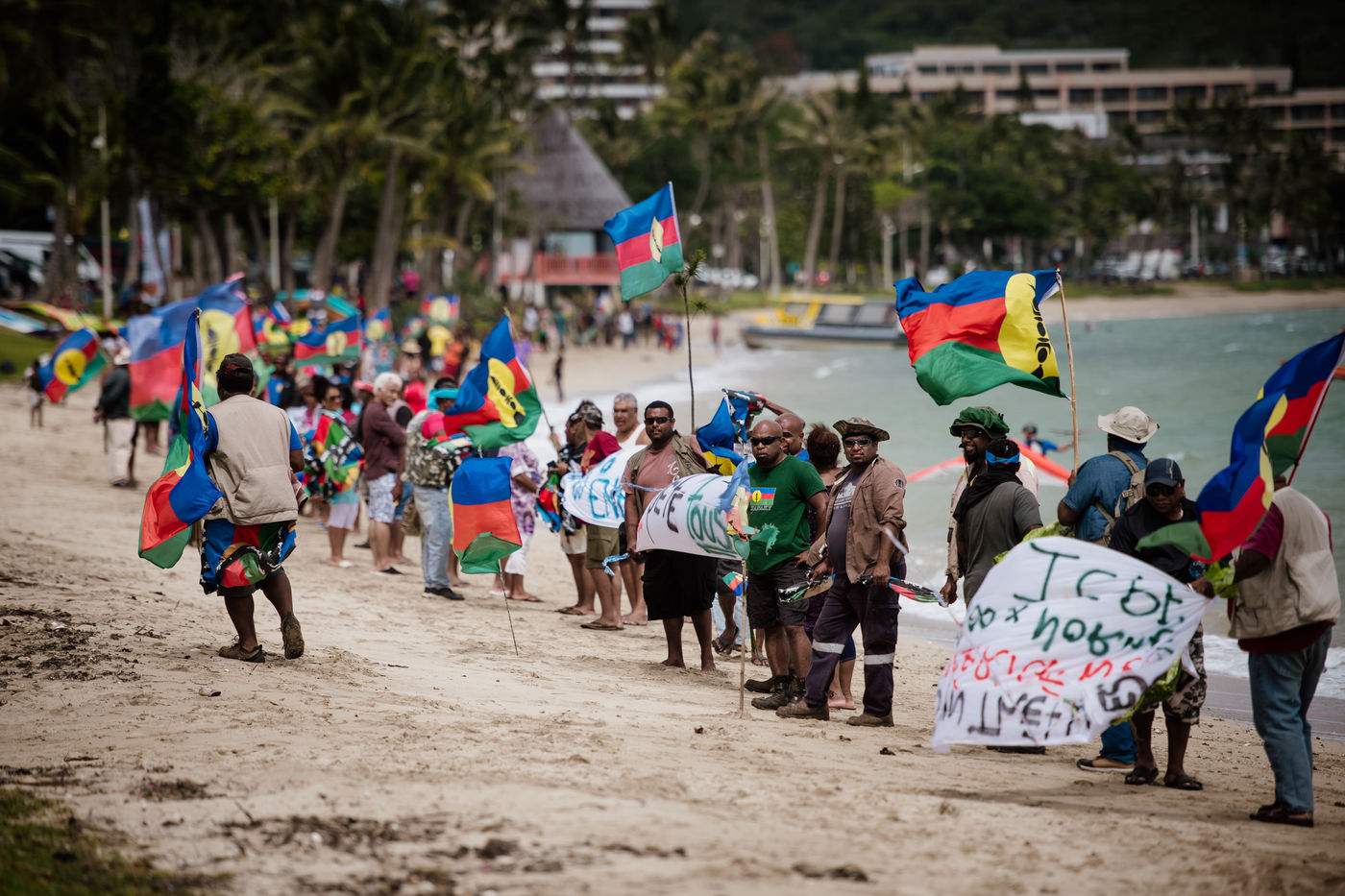 The USUP collective is mobilizing on the Anse Vata beach in Noumea