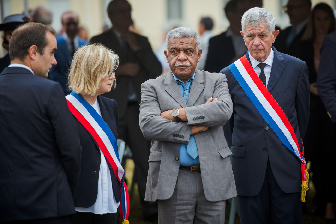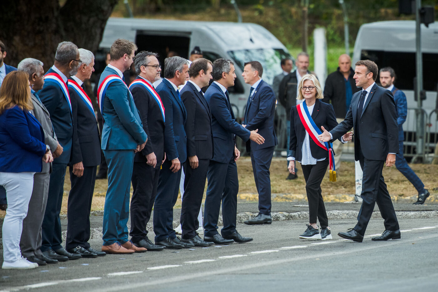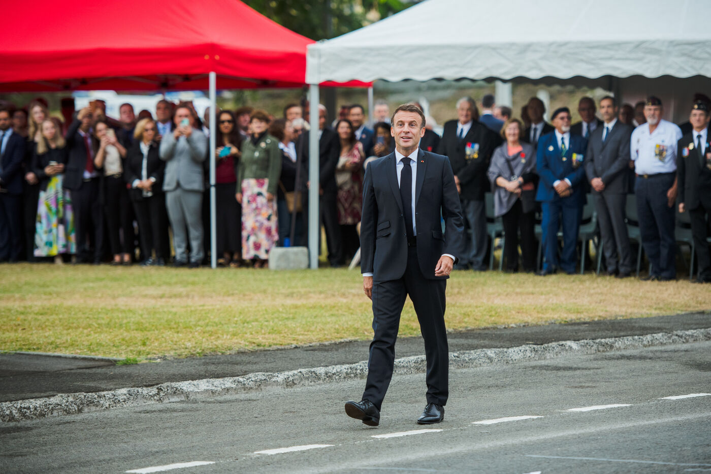 July 2023. The President of the French Republic, Emmanuel Macron, is on an official visit to New Caledonia. He takes part in the ceremony at Place Bir-Hakeim in Nouméa.