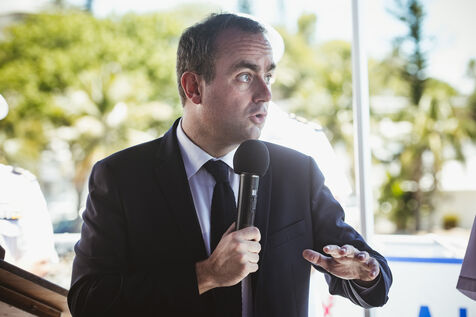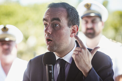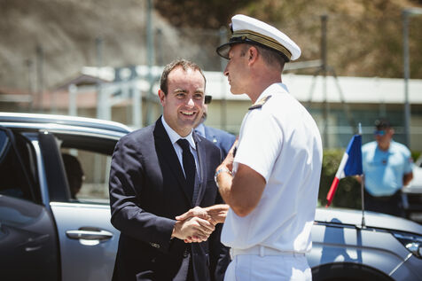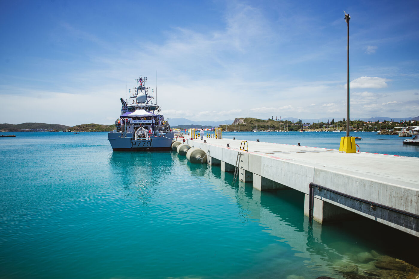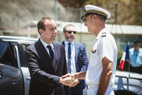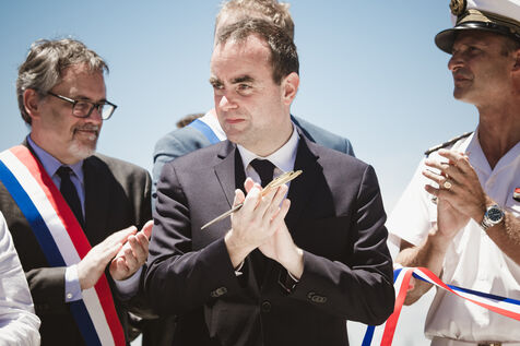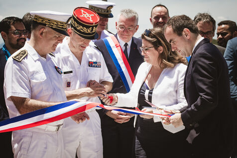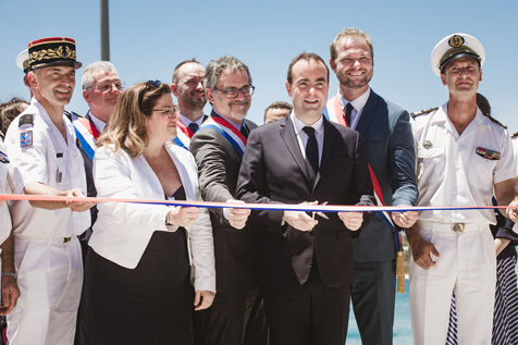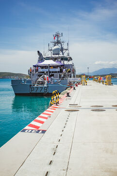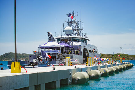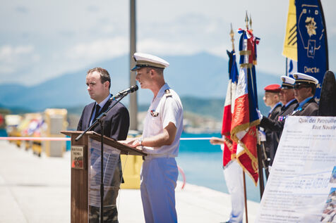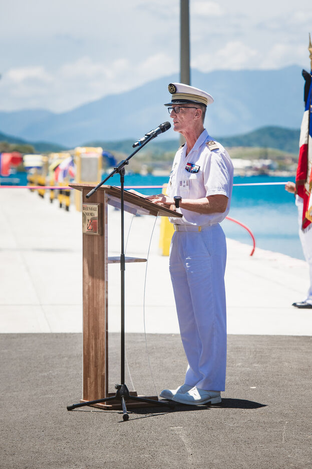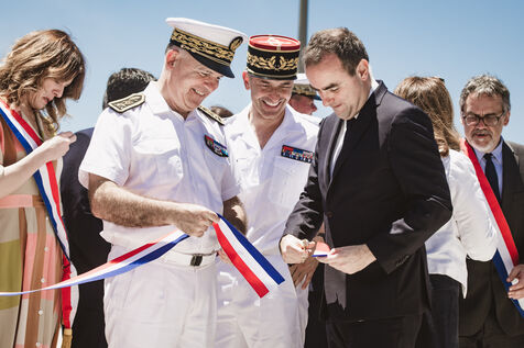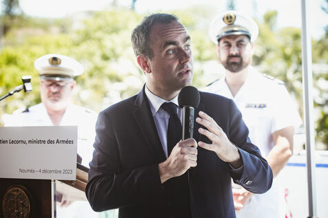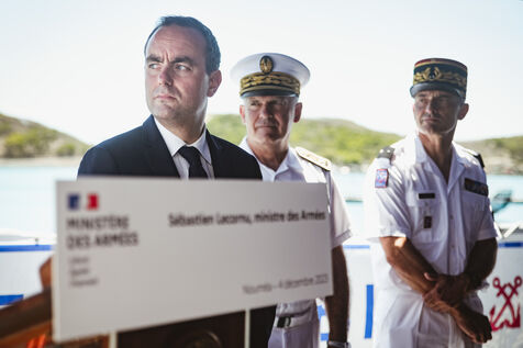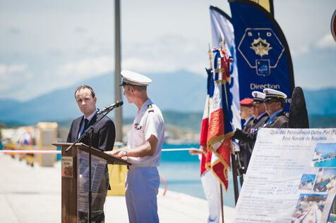 Armies Minister Sébastien Lecornu inaugurates the new overseas patrol boat dock at the Pointe Chaleix naval base in Nouméa.