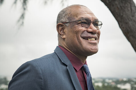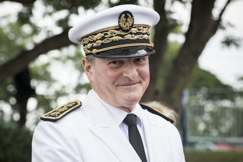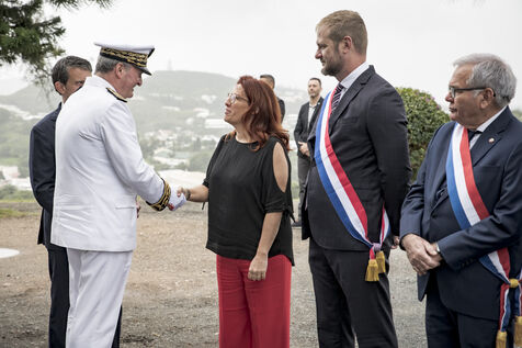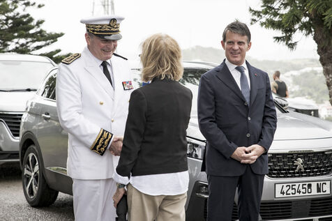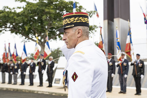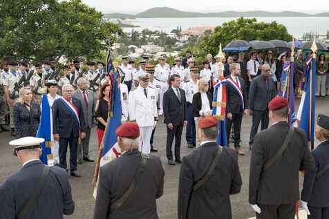 French High Commissioner Jacques Billant, in office for two days in New Caledonia, lays a wreath at the Croix de Lorraine in Noumea, in the presence of French Overseas Minister Manuel Valls, on an official visit to the territory. Caledonian elected representatives were also present.