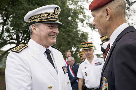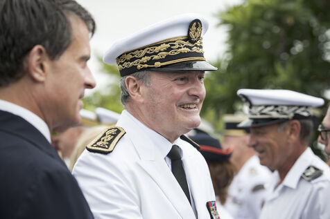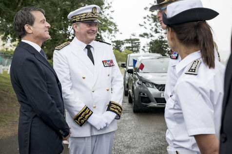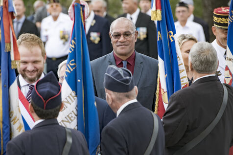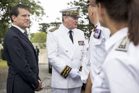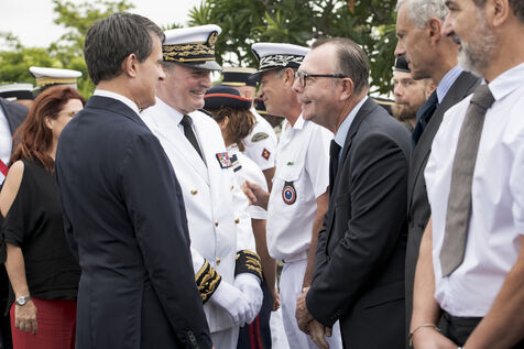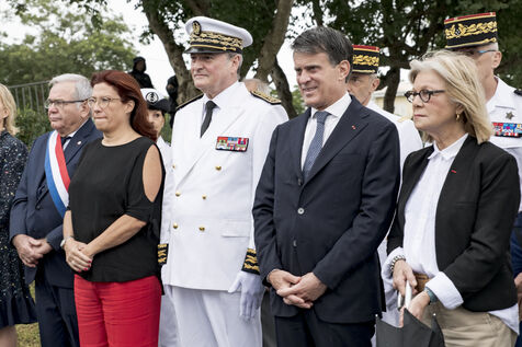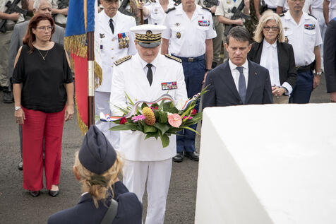 Nouvelle-Calédonie - Dépôt de gerbe par le nouveau Haut-Commissaire de la République Jacques Billant durant la visite officielle de Manuel Valls