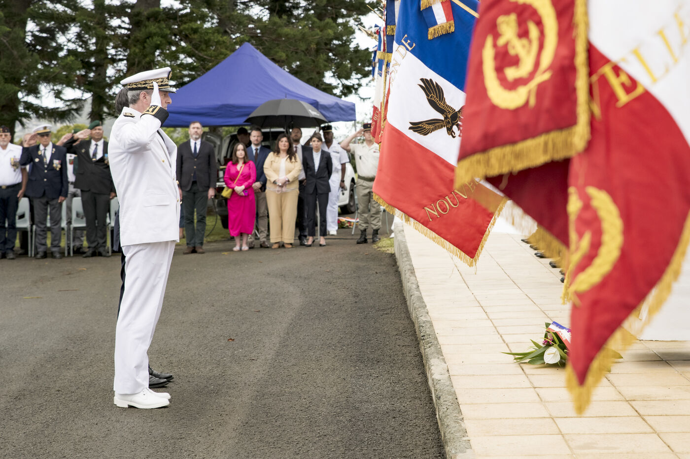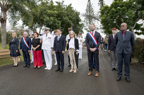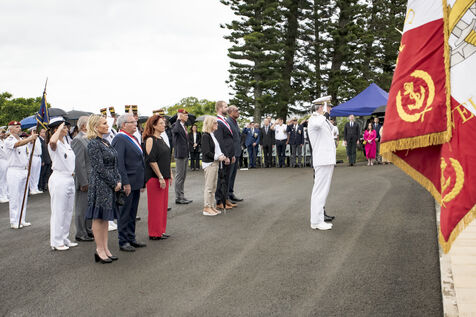 Le Haut-Commissaire de la République Jacques Billant en fonction depuis deux jours en Nouvelle-Calédonie dépose une gerbe à la Croix de Lorraine à Nouméa, en présence du Ministre des Outre-mer Manuel Valls, en visite officielle sur le territoire. Sont présents également les élus calédoniens.