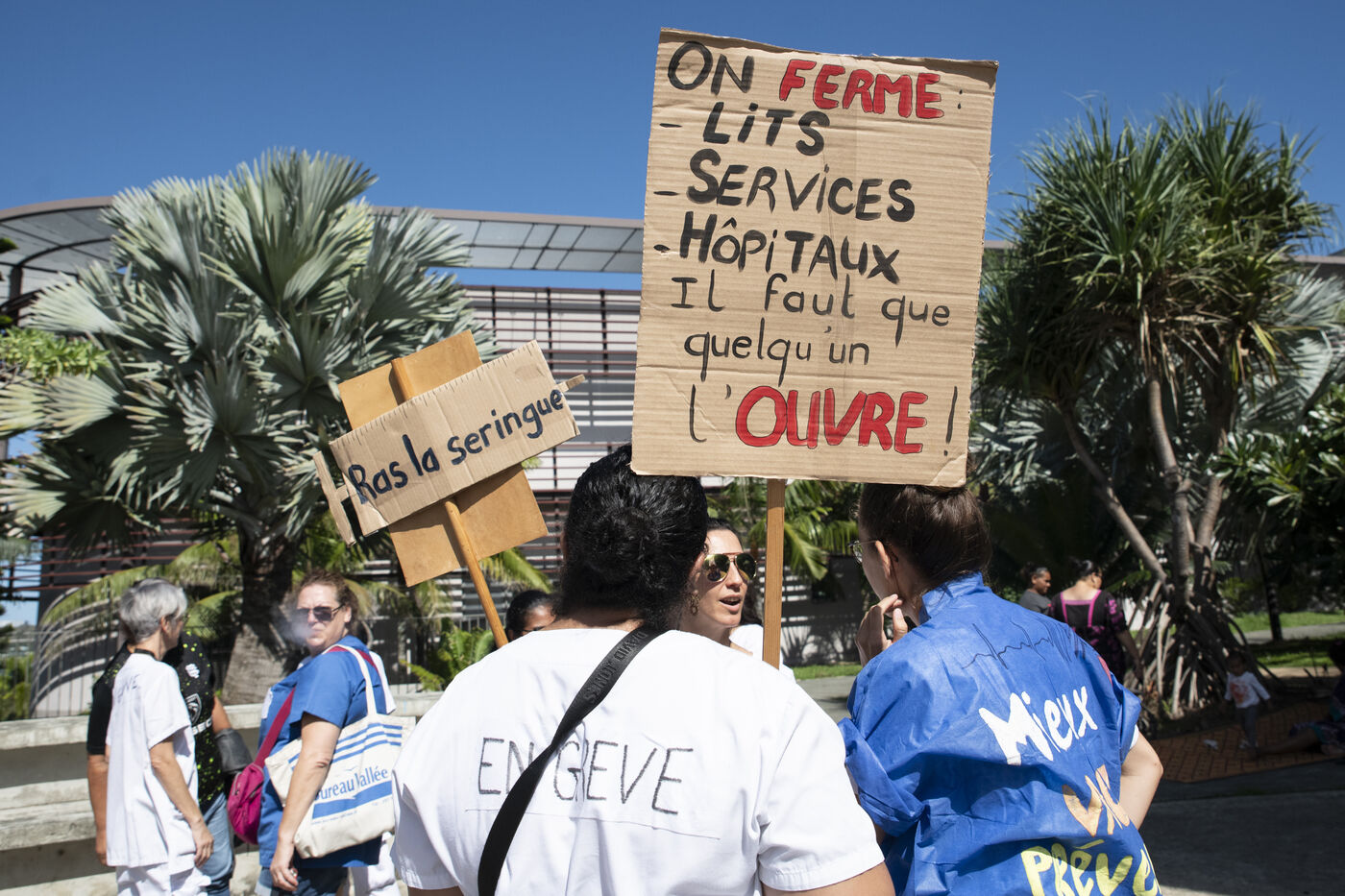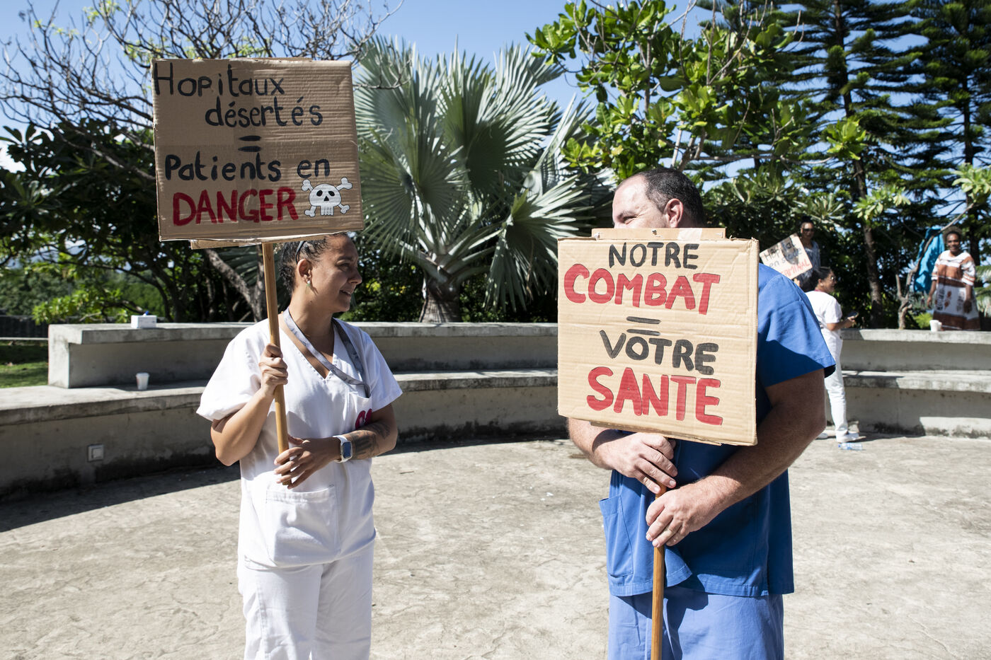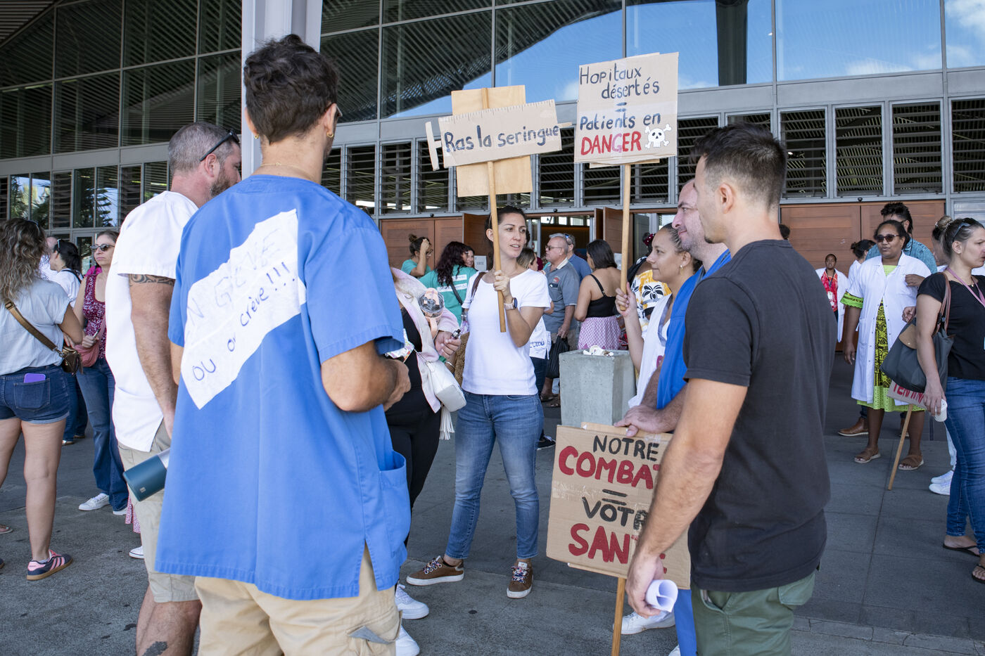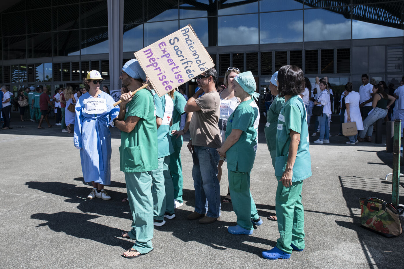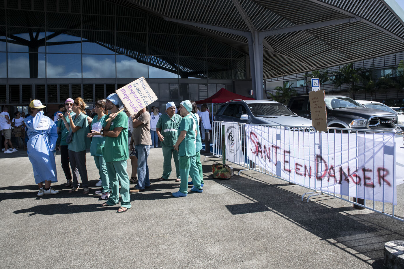 Caregivers at Médipôle Centre Hospitalier Territorial Gaston-Bourret are responding to a call from the UT CFEF-CGC by demonstrating on the hospital's forecourt, to denounce the deterioration in their working conditions: lack of resources, team exhaustion due to lack of manpower, absence of hardship bonuses, pay and recruitment inequalities, and violence against them. This unlimited strike concerns all healthcare professionals throughout New Caledonia.