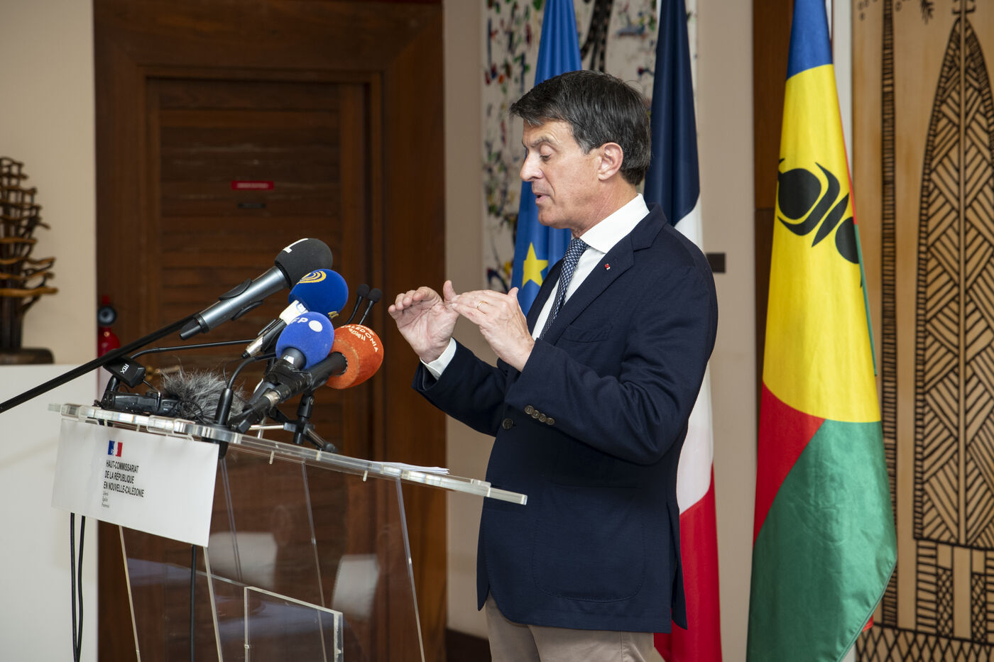 New Caledonia - Press conference by Manuel Valls at the end of the “conclave” in Deva