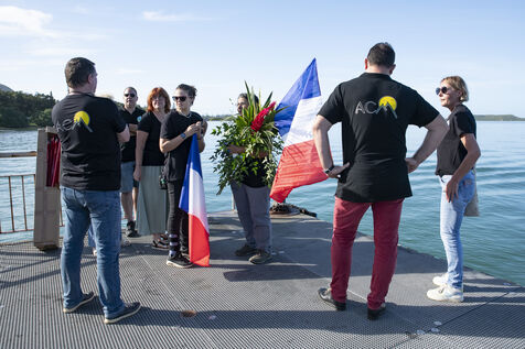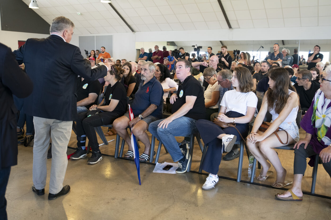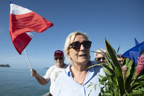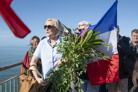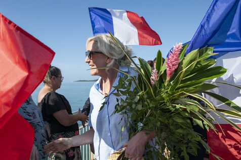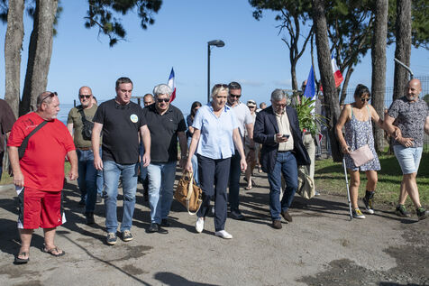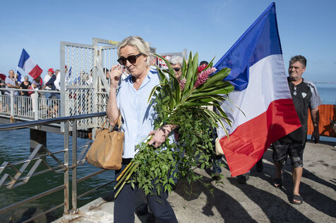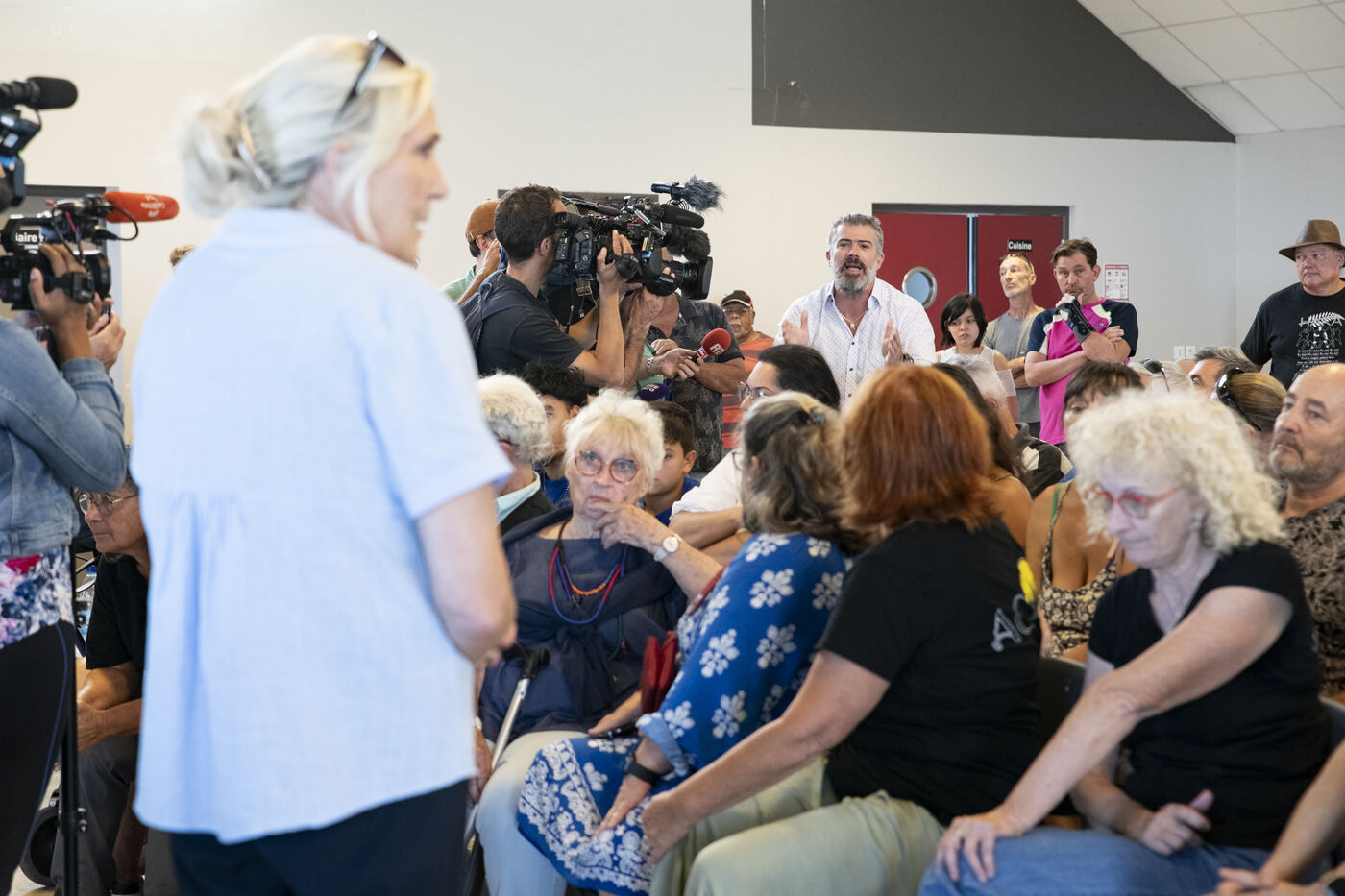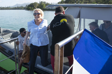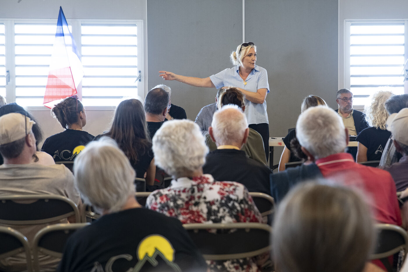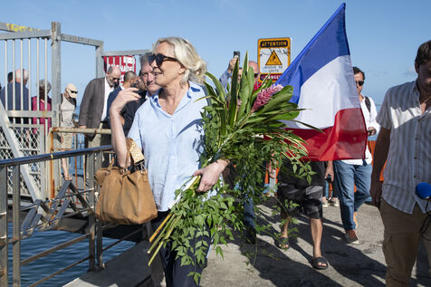 Visiting New Caledonia for three days, the leader of the Rassemblement National party, Marine Le Pen, met the inhabitants of Le Mont-Dore, accompanied by the first vice-president of the Rassemblement National, Louis Aliot, the two European deputies, Andre Rougé and Christophe Bay, and the departmental delegate of the Rassemblement National in New Caledonia, Alain Descombels. Welcomed on arrival by boat from Nouméa by the Association Citoyen Montdorien (ACM), the delegation then held lengthy discussions with local residents and members of the association in a particularly tense and animated atmosphere.
