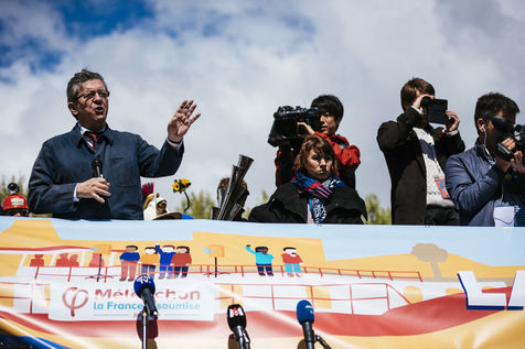 Jean-Luc Mélenchon en campagne à bord de la "Péniche insoumise".