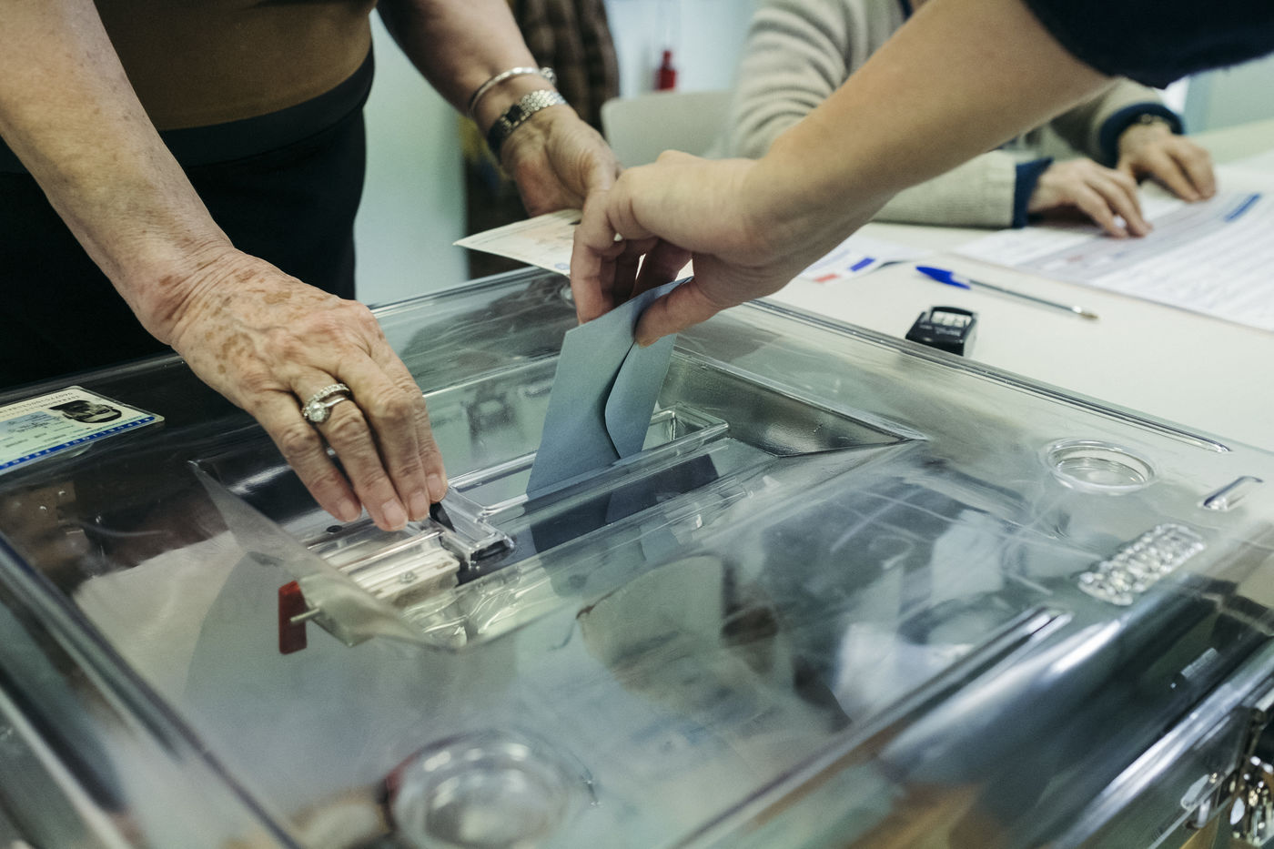 Day of the second round of the presidential election in France. Voting stations in the 20th arrondissement of Paris. Paris, France, May 7, 2017.
