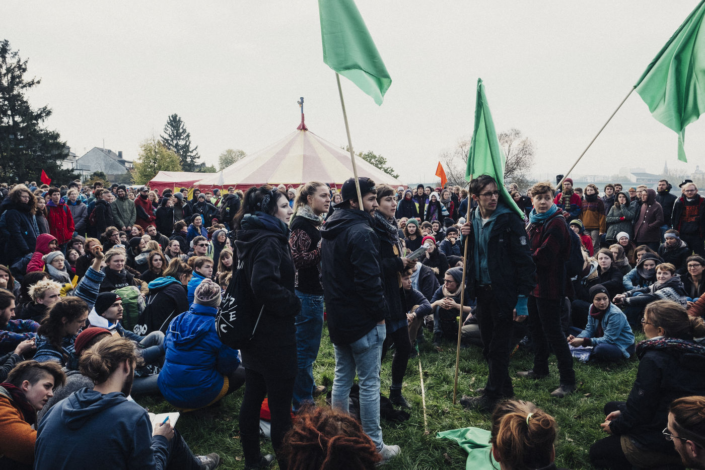 More than 2,000 demonstrators came to protest the impact of coal on the climate in a mine near Bonn on the eve of the opening of the 23rd UN Climate Change Conference. The lignite mine, located about 50 km west of Bonn in North Rhine-Westphalia, belongs to the German group RWE. After a long walk through a no-man's-land, the protesters, dressed in a white suit, positioned themselves at the edge and then inside the gigantic crater formed by Hambach's open-cast lignite mine.