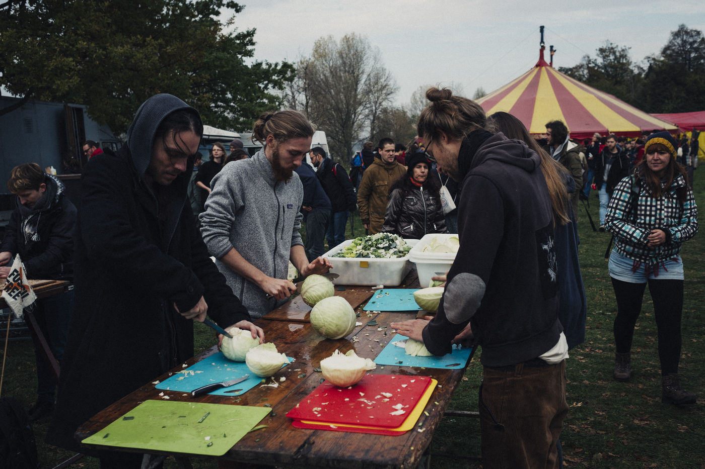 Sous les yeux des policiers, postés notamment autour d'une excavatrice de plus de 200 m de long ("les plus grandes au monde" souligne le site de la mine). Hambach, Allemagne, 5 novembre 2017.