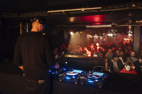DJ Set du DJ Kobosil du collectif Exil, et warm up du DJ Ruhbarb, durant la soirée "Exil : Kobosil all night long" au Glazart. Paris, 24 mars 2018.
