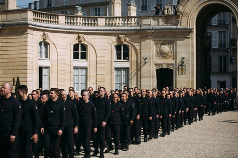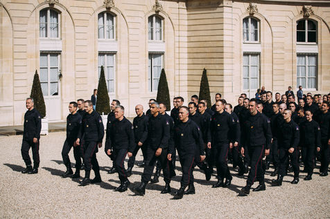 The President of the Republic, Mr Emmanuel MACRON, received at the Palais de l'Elysée, the fire brigades and services mobilised during the fire in Notre-Dame de Paris. This reception was attended by Prime Minister Edouard Philippe, Christophe CASTANER Minister of the Interior, Franck RIESTER Minister of Culture, Laurent NUNEZ, Secretary of State to the Minister of the Interior, and Mrs Florence PARLY, Minister of the Armed Forces, Monsignor Patrick Chauvet, Rector of Notre-Dame de Paris, Anne Hidalgo, Mayor of Paris, Didier Lallement, Prefect of Police of Paris, General Jean-Louis Georgelin, special representative of the President of the Republic for the reconstruction of Notre-Dame de Paris and General Jean-Claude Gallet, Commander of the Sapeurs-pompiers de Paris. Paris, April 18, 2019.