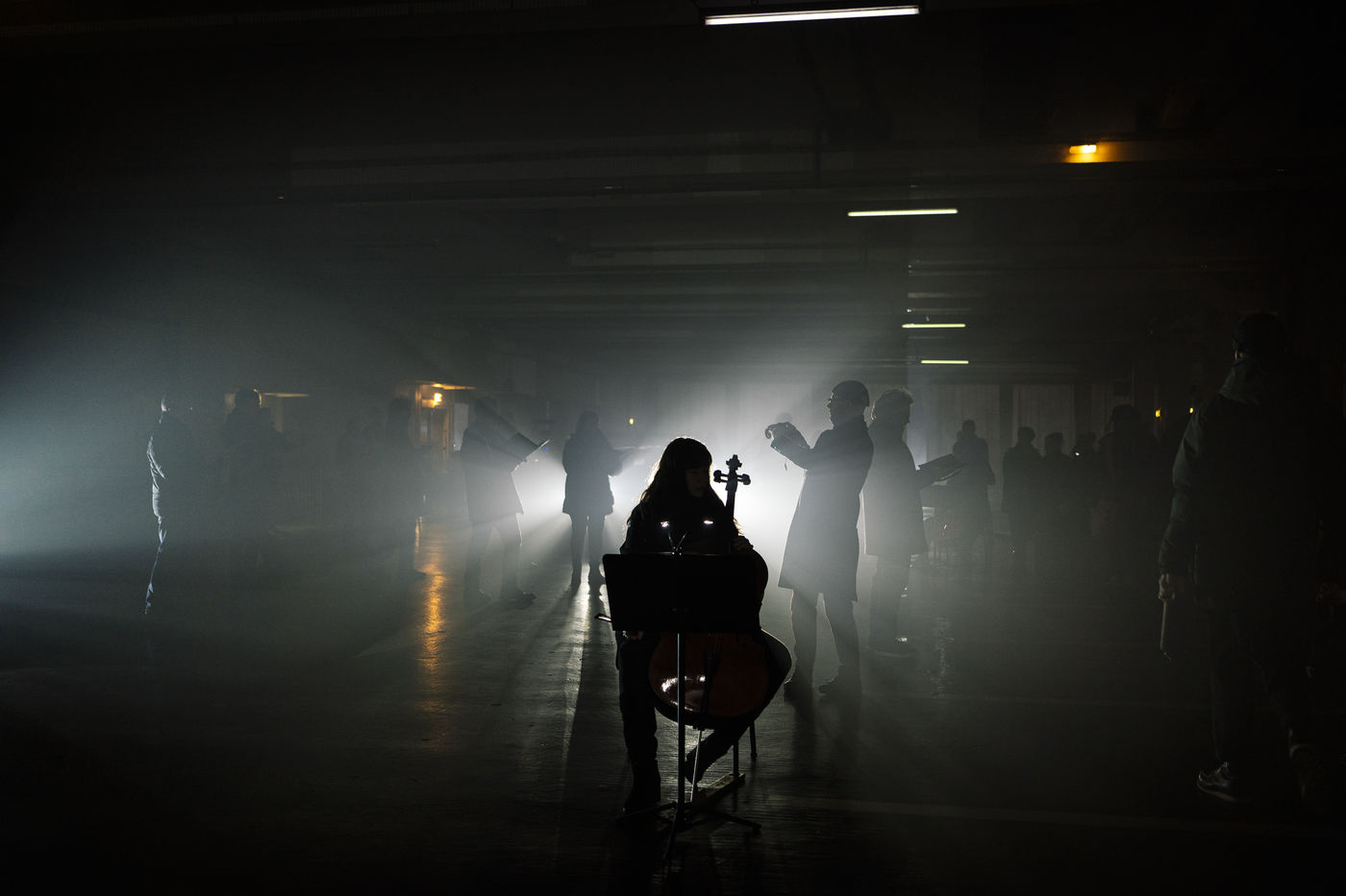 The Opera Comique invites Christian Boltanski, Jean Kalman and Franck Krawczyk for a creation at the Centre Pompidou. The show Fosse follows three rules: the given space forms the basis of the libretto; the show has neither beginning nor end; the spectator is not placed in front but walks in the very heart of the stage space. Work for soprano, solo cello, choir, 12 cellos, 6 pianos, percussion and electric guitars. Paris, January 10, 2020.