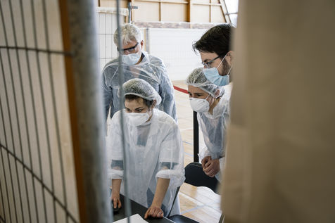 The Tabanelli gymnasium in Champigny-sur-Marne hosts a medical consultation centre for patients with symptoms of the Covid-19 coronavirus. Champigny-sur-Marne, France, March 31, 2020.