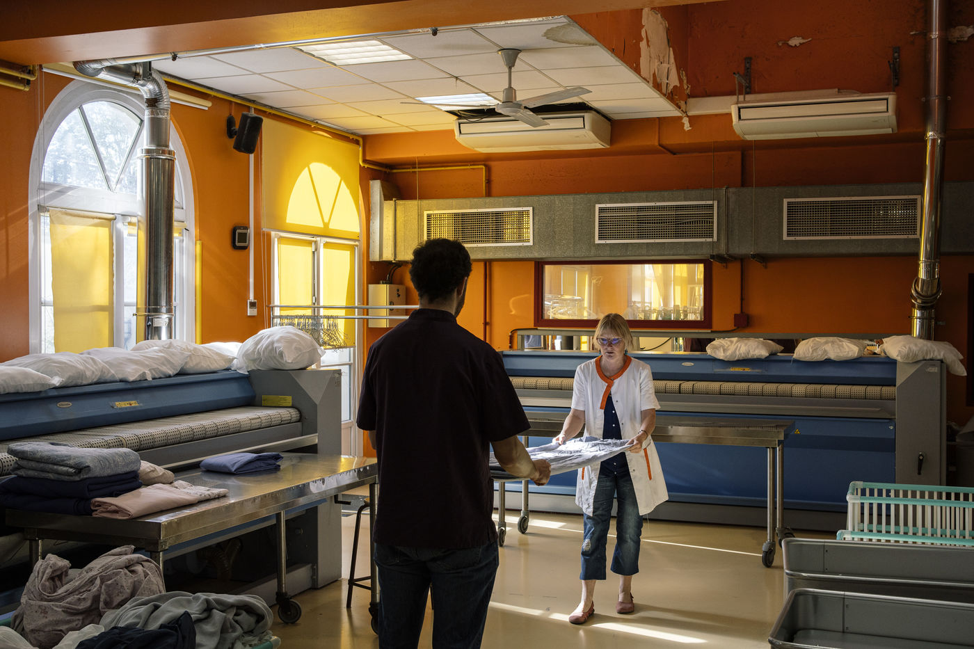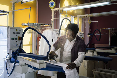 A l'ESAT de la Fondation des Amis de l'Atelier au Plessis-Robinson, il s'agit de blanchir les draps des foyers et EHPAD, produire des kits de fabrication de masques et blouses distribués à un réseau de bénévoles. Une fois produits, ils seront lavés a 60° et conditionnés sous film puis distribués au personnel et aux résidents des établissements.