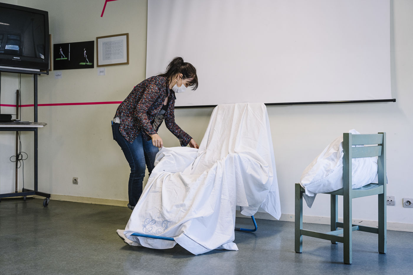 Représentation devant des collégiens d'une classe de 3ème du collège Joliot-Curie de Pantin, de la pièce "Le Massacre du printemps" par la compagnie Tout un ciel et mis en scène par Elsa Granat. Cette rencontre est organisée par le Théâtre Paris-Villette.