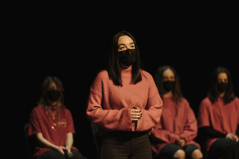 France, Théâtre de Saint-Quentin-en-Yvelines, scène nationale, 2021-05-26. Theatrical performance "Just the end", creation directed by Aurélie Ruby as part of an artistic education project developed throughout the Yvelines region, with the participation of high school students from various schools in the department. Photograph by Denis Meyer / Hans Lucas.