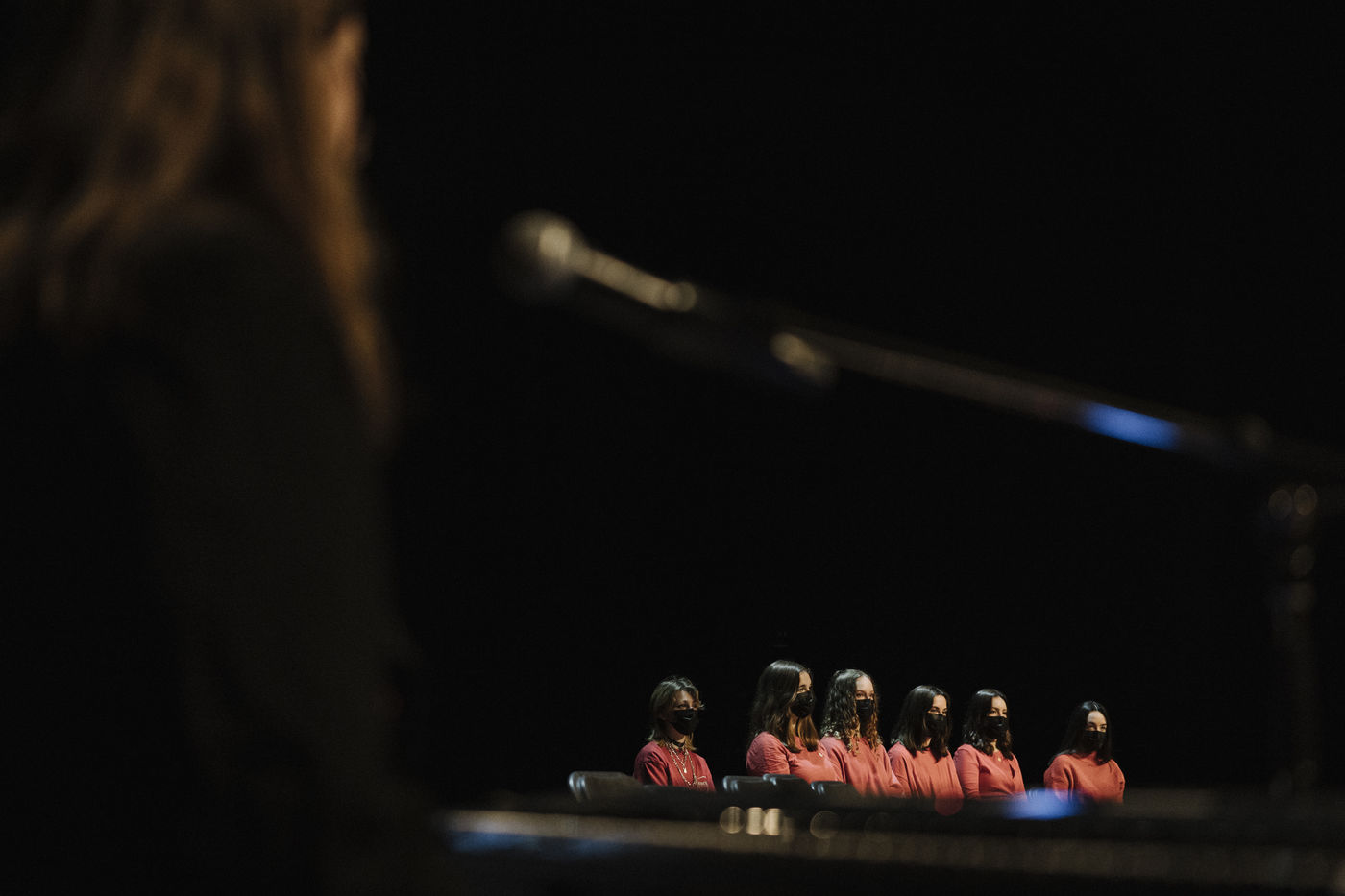 France, Théâtre de Saint-Quentin-en-Yvelines, scène nationale, 2021-05-26. Représentation théâtrale "Juste la fin", création mise en scène par Aurélie Ruby dans le cadre d'un travail d'éducation artistique, développé sur tout le territoire yvelinois, avec la participation de lycéennes et lycéens de différents établissements du département. Photographie de Denis Meyer / Hans Lucas.