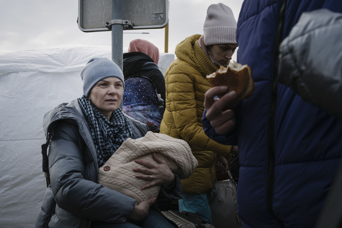 Invasion de l'Ukraine par la Russie en 2022. Des réfugiés sont accueillis dans un camp humanitaire à la frontière côté Slovaquie.